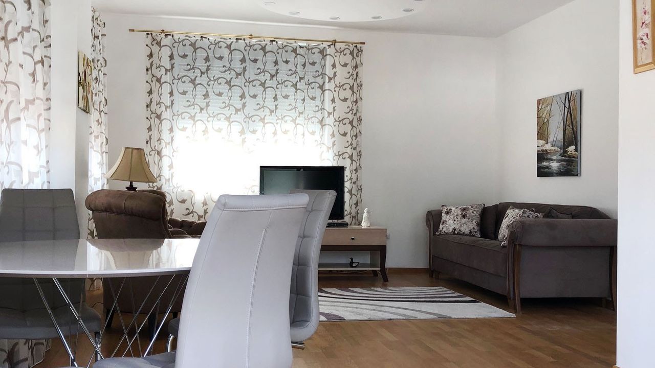 Площадь квартиры 150 м2 планировка квартиры включает в себя: гостиную, три спальни, три санузла, отдельную кухню и две огромные террасы. Квартира полностью меблирована и оборудована. Качественная отделка, мебель и техника, современный дизайн, много света и пространства — это большие преимущества данной недвижимости.