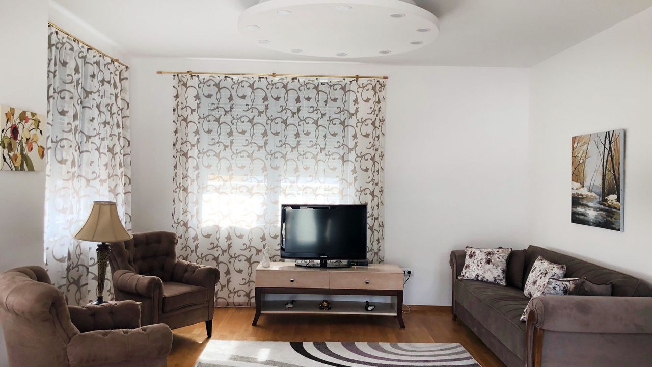 Квартира с тремя спальнями и тремя санузлами находится в Будве, в центре города, на последнем этаже современного 7-ми этажного дома и имеет удивительно красивые виды на море, город, горы и черепичные крыши домов. Это единственная квартира на этаже , что создает атмосферу полного уединения.
