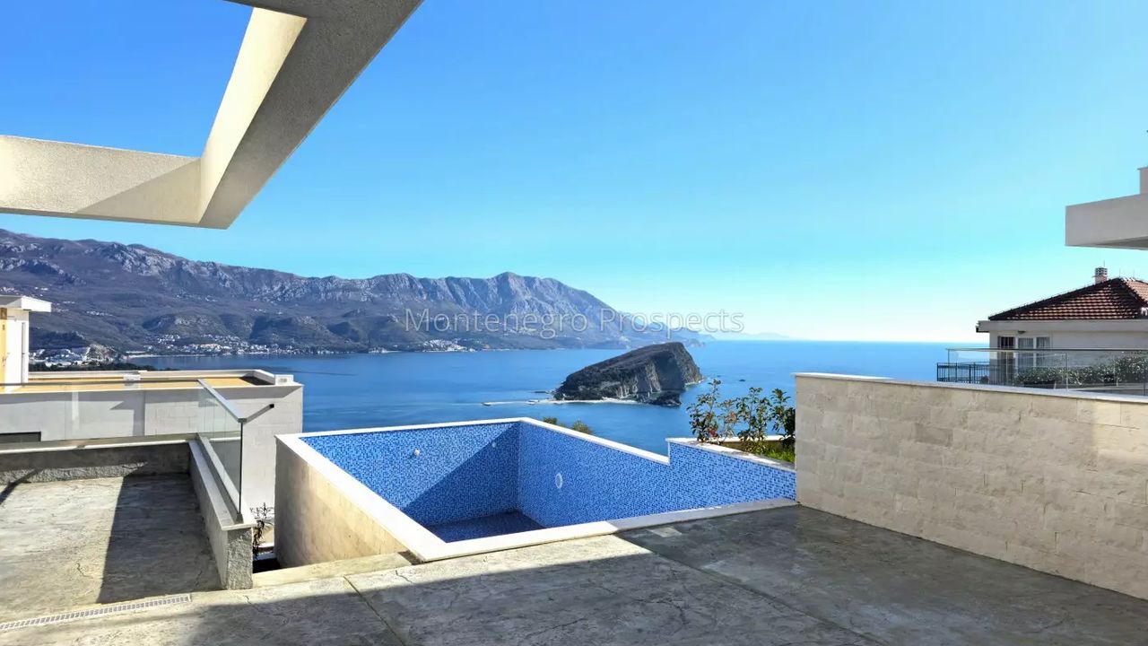 Черногория. Новая вилла с великолепным видом в отличном месте в Будве.