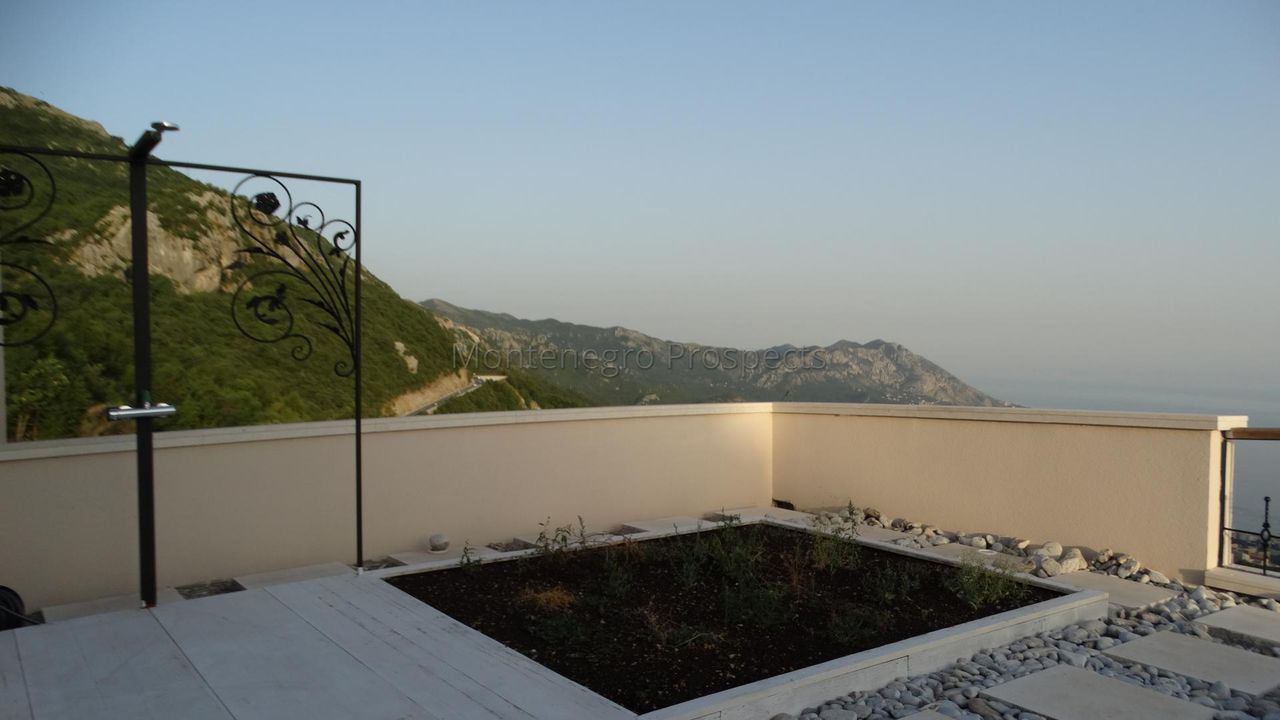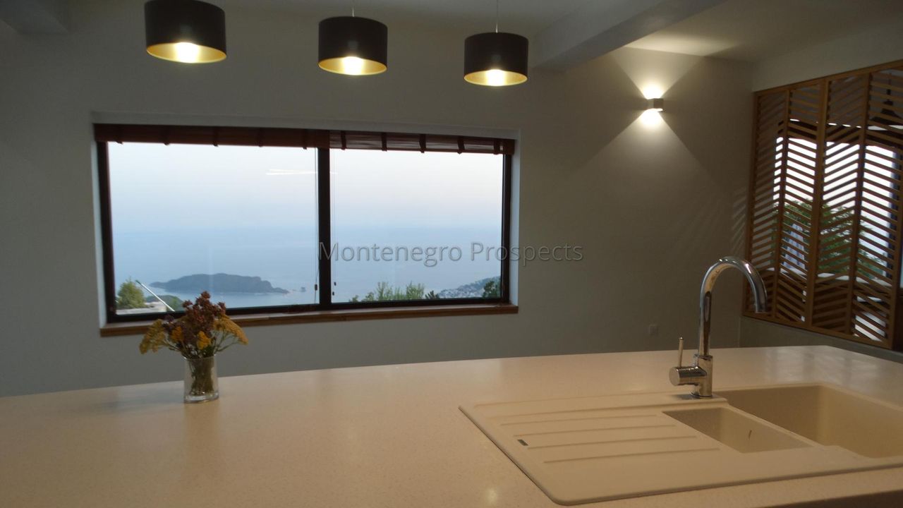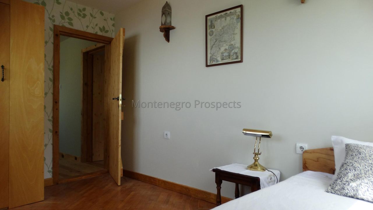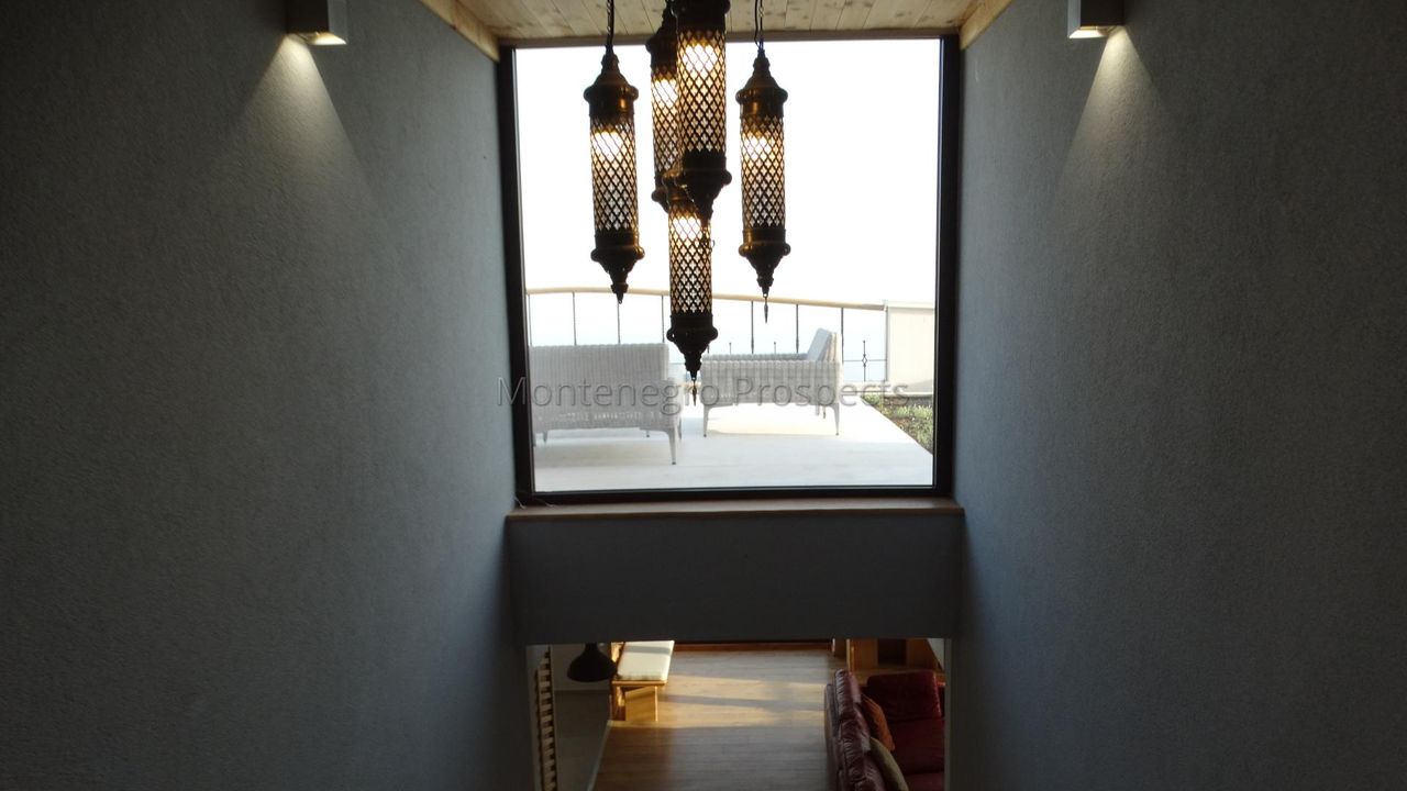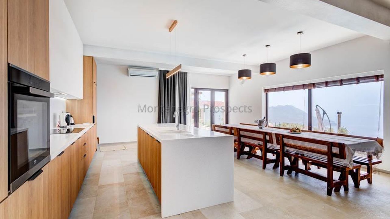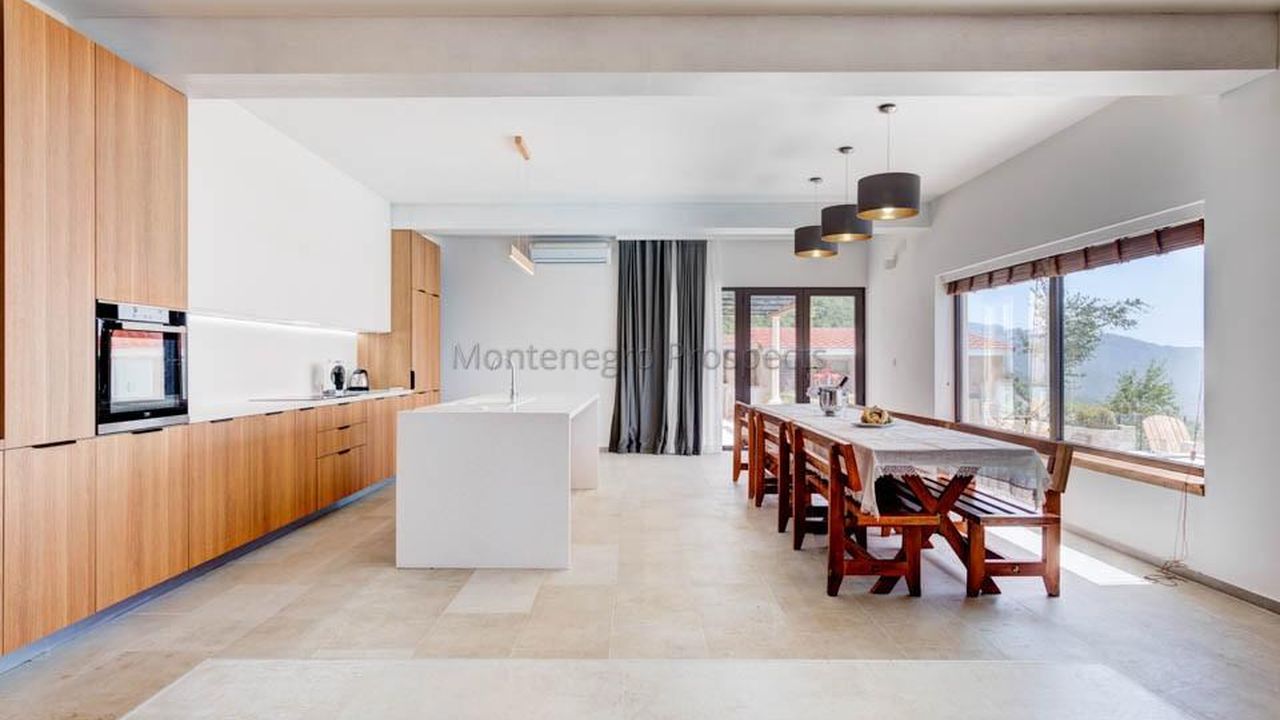 Окна выходят на юг, при этом планировка здания обеспечивает отсутствие избыточного освещения в летний период и способствует сохранению тепла в холодное время года даже в отсутствии отопления. Дом органично вписывается в ландшафт местности, расположен на возвышенности в деревне Лапчичи над Будвой, откуда открывается великолепный панорамный вид на морской и горный пейзажи. Тихое уединенное место, приватная атмосфера и естественное окружение - террасные сады и небольшой виноградник, огород для круглогодичного органического земледелия.
