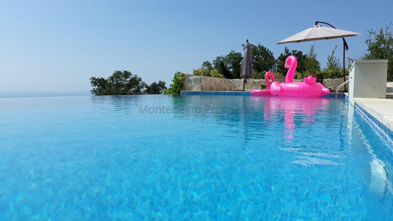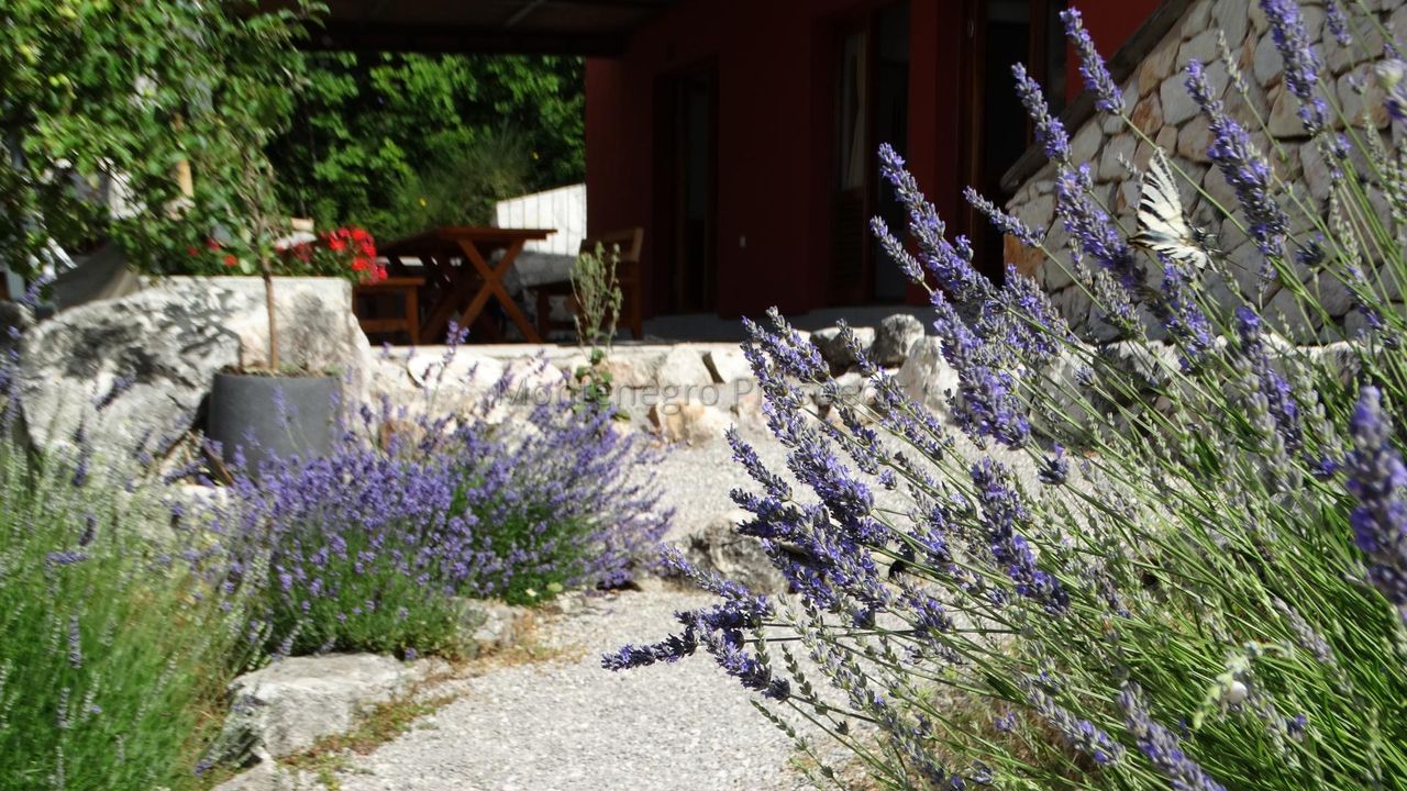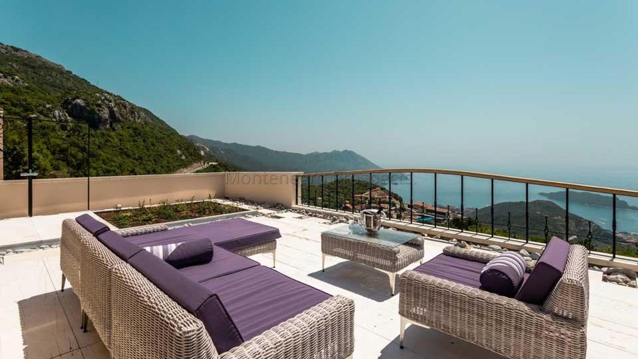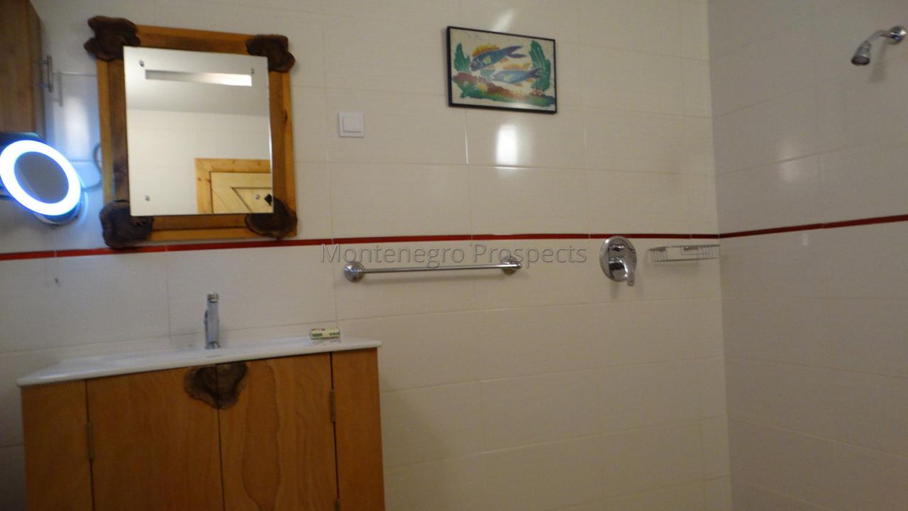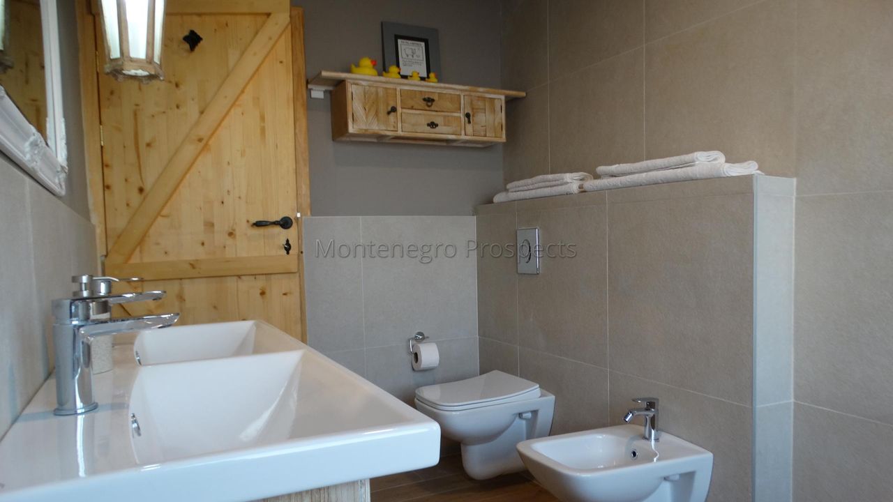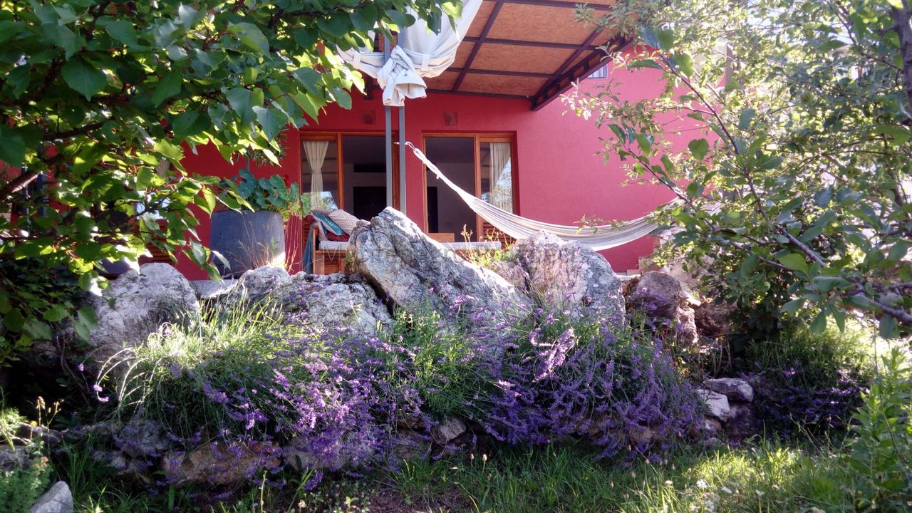 Окна выходят на юг, при этом планировка здания обеспечивает отсутствие избыточного освещения в летний период и способствует сохранению тепла в холодное время года даже в отсутствии отопления. Дом органично вписывается в ландшафт местности, расположен на возвышенности в деревне Лапчичи над Будвой, откуда открывается великолепный панорамный вид на морской и горный пейзажи. Тихое уединенное место, приватная атмосфера и естественное окружение - террасные сады и небольшой виноградник, огород для круглогодичного органического земледелия.