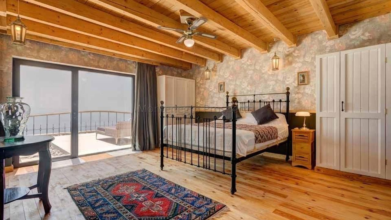 Деревянная лестница, полы из натурального дерева, двери и декоративные стеновые панели ручной работы, две односпальные / двуспальные кровати, вид на горы и море, кондиционер / отопление