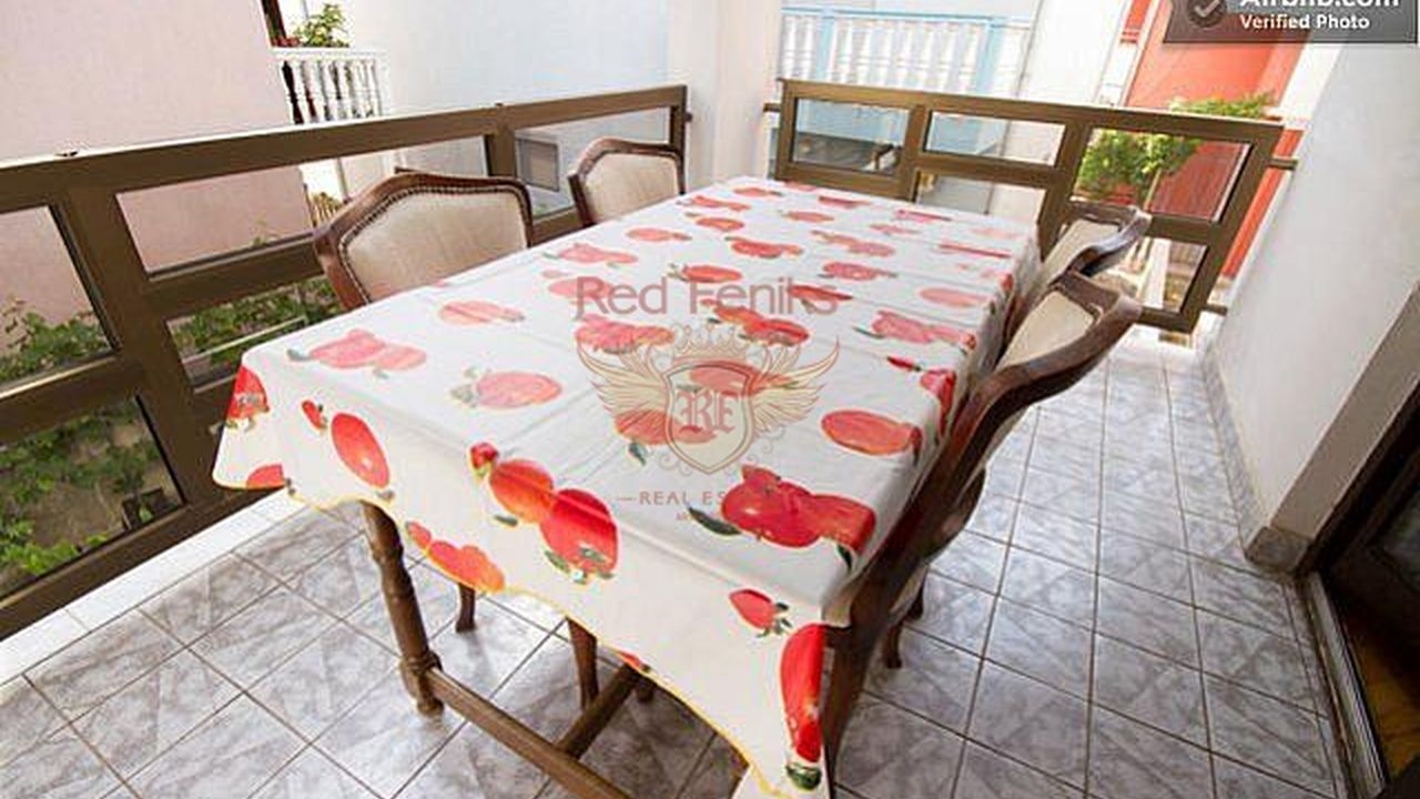 Вилла построена на участке площадью 370м2, площадь виллы составляет 490м2.На вилле находится 6-ть отдельных апартаментов, 5-ть из них с отдельной спальней.
