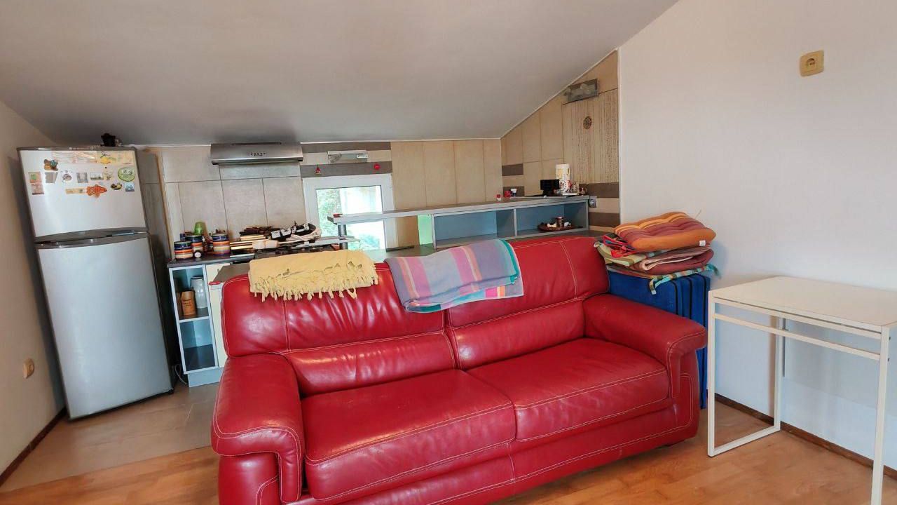 Квартира расположена на 4-м этаже четырёхэтажного дома. Площадь без учёта террасы — 36 кв. м. Площадь террасы — 5 кв. м. Планировка: прихожая, коридор, гостиная с кухней, отдельная спальня, ванная комната и терраса с прекрасным видом на море.