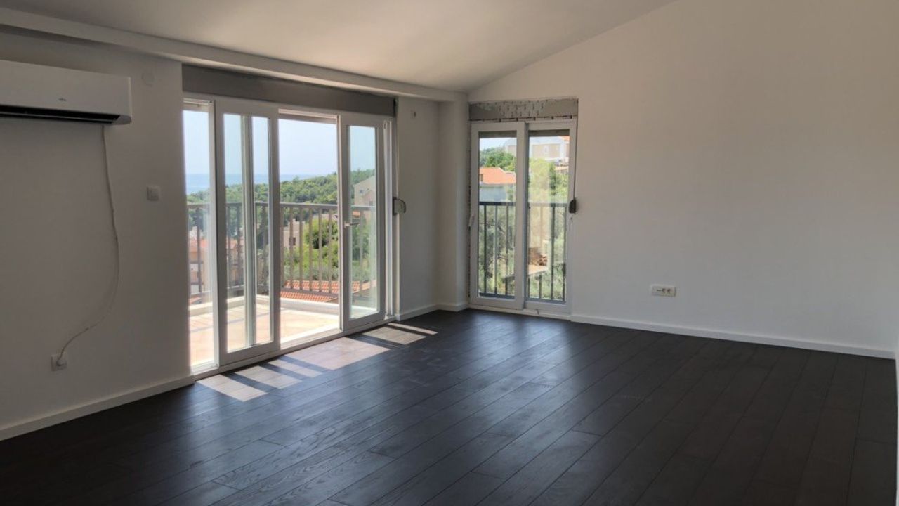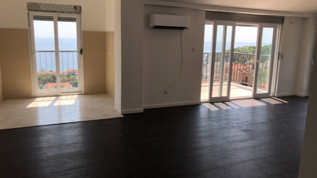 Продается трехкомнатная квартира с видом на море в городе Петровац. Квартира состоит из: корридора, гостиной, совмещенной с обеденной зоной, кухни, двух спален, двух санузлов и террасы с видом на море. Квартира расположена на 5 этаже. Расстояние от моря: около 600 м. Квартира продается без мебели. В доме нет лифта.