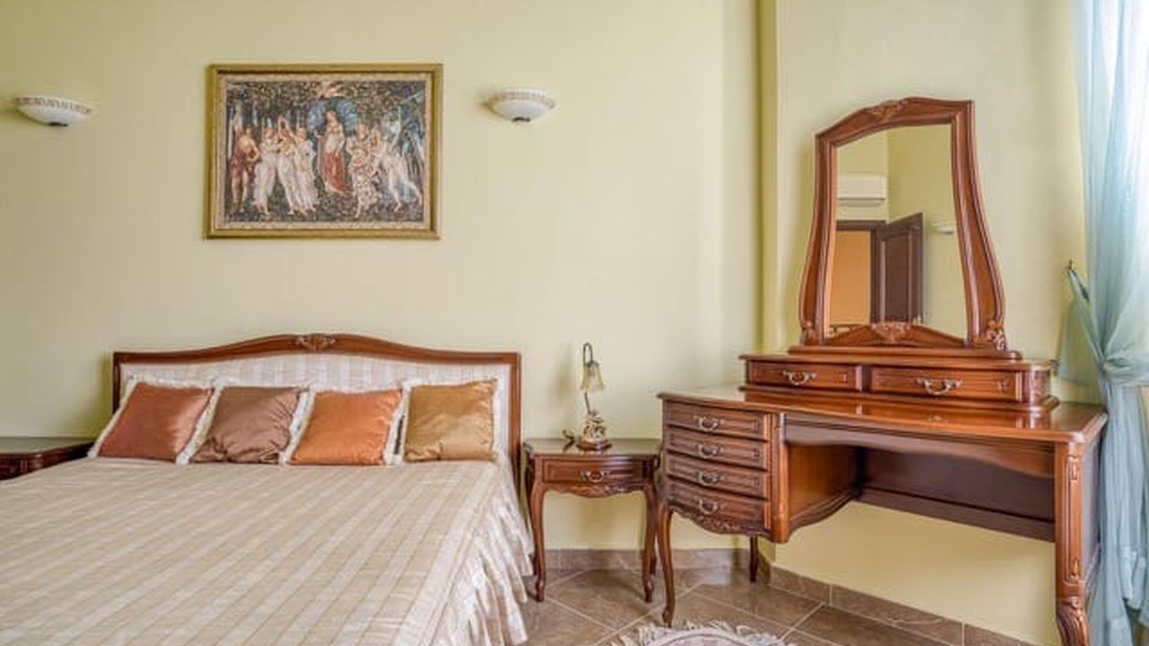 На втором уровне три большие спальни и санузел, три террасы. Кондиционеры во всех комнатах, а также на кухне и в гостиной.