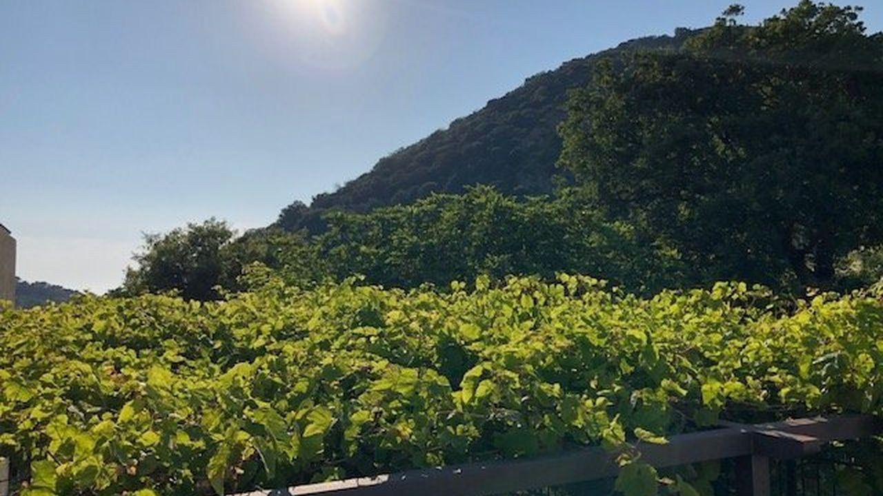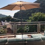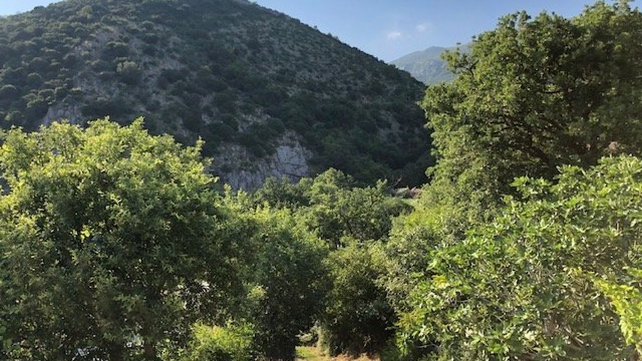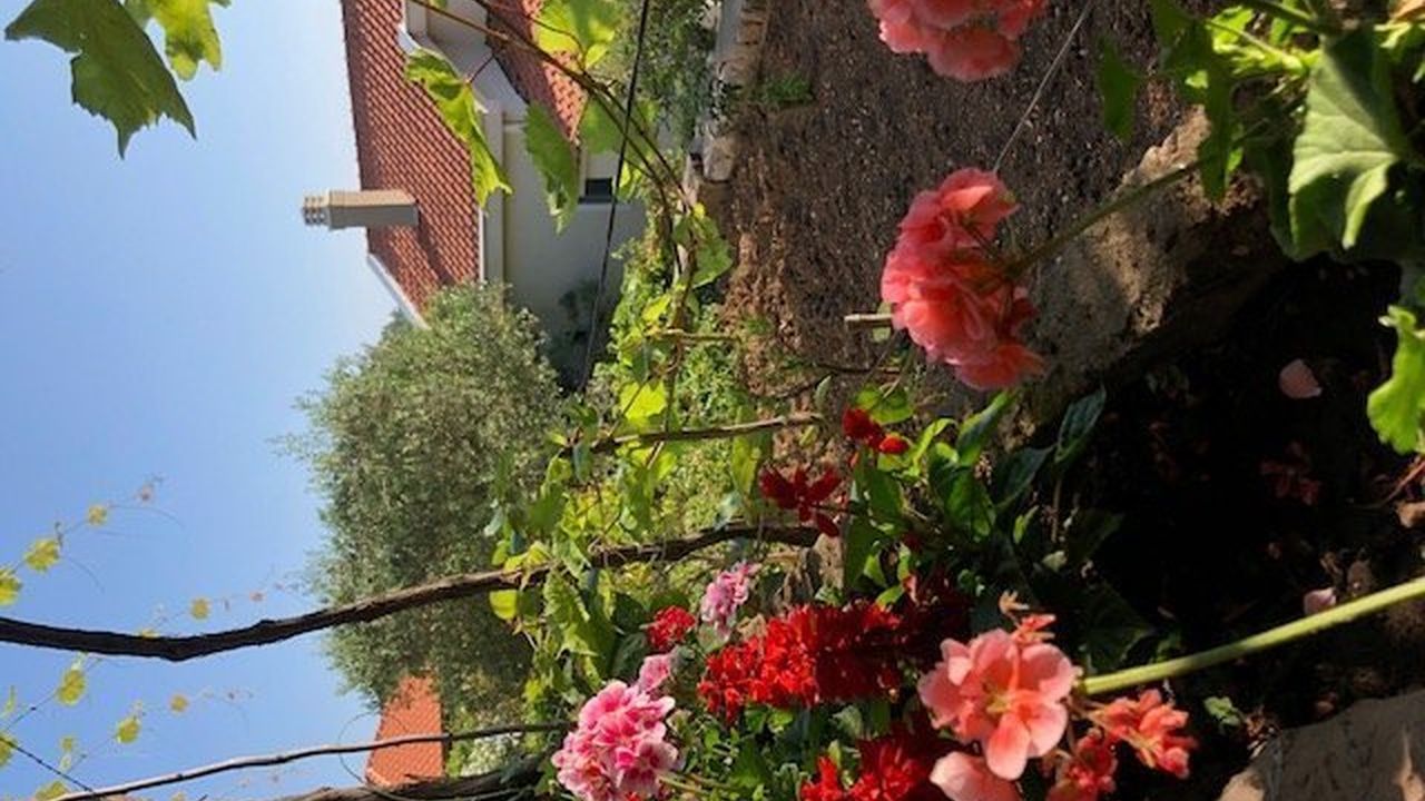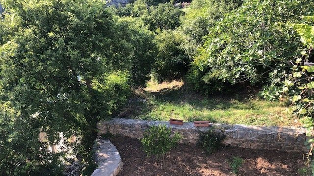 Территория дома разделена на два уровня. Уровень перед входом в дом представляет собой большую террасу, покрытую виноградными лозами и киви, которая является отличным местом для отдыха и барбекю. Второй уровень - фруктовый сад.