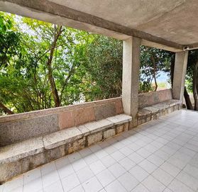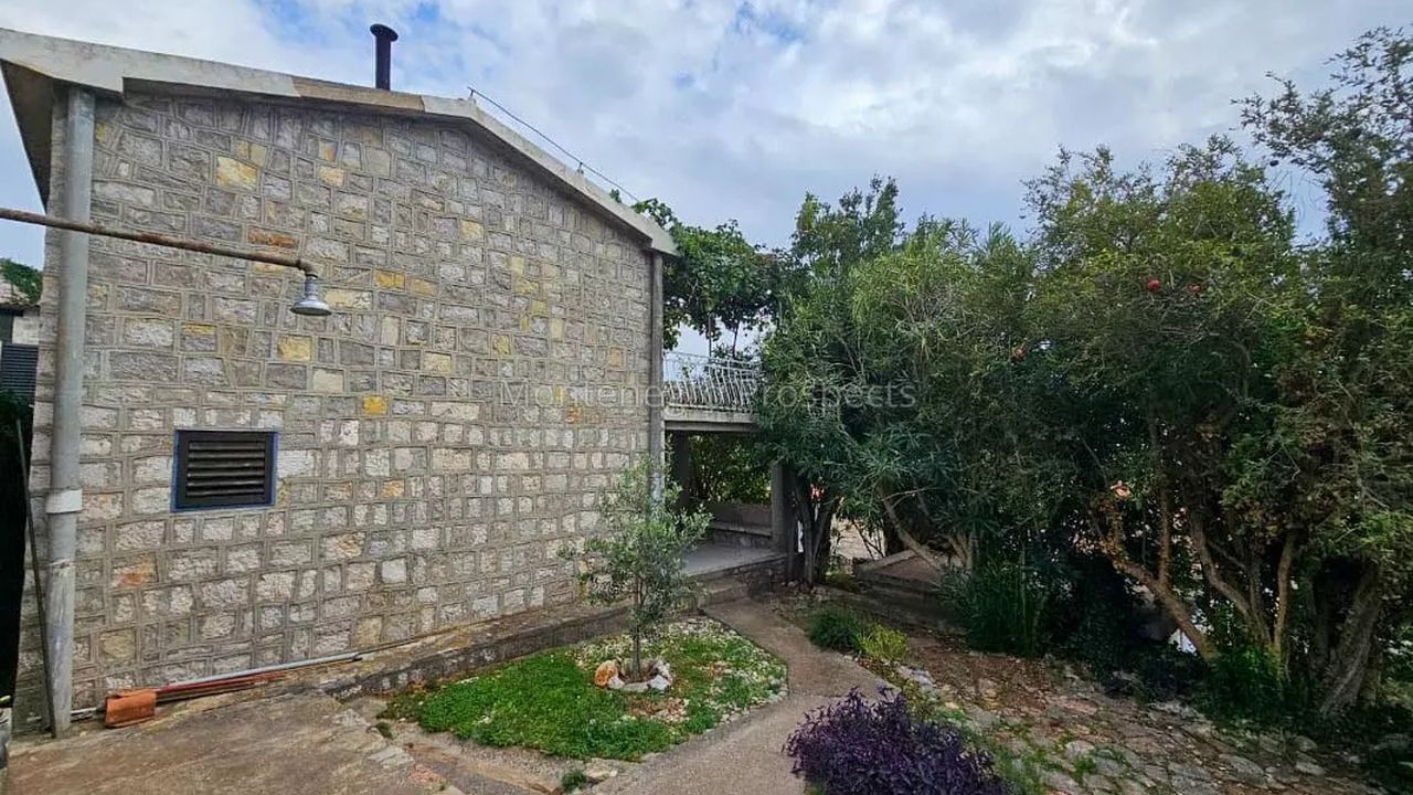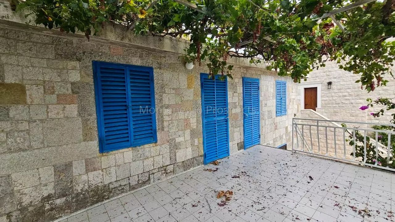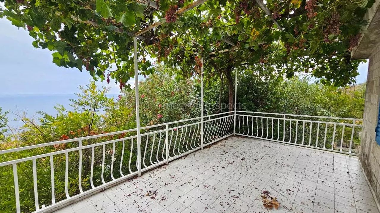 Из двора и с террас открывается красивый вид на море. Во дворе есть каменный барбекю, гранат, инжир и оливковое дерево, а также есть возможность сделать парковку.