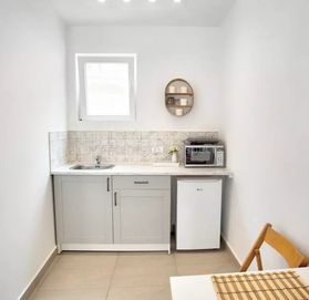 Структура дома: Апартаменты No1, на 1м этаже. Кухня-гостиная, санузел, 2 спальни, техника на кухне: индукционная плита, духовка, посудомоечная машина, микроволновка, вытяжка, холодильник, телевизор smart TV с кабельными каналами, просторная тенистая терраса с зоной отдыха и столом.