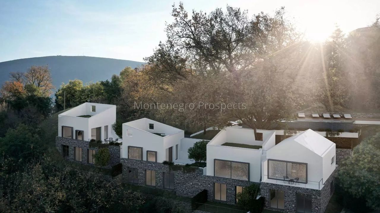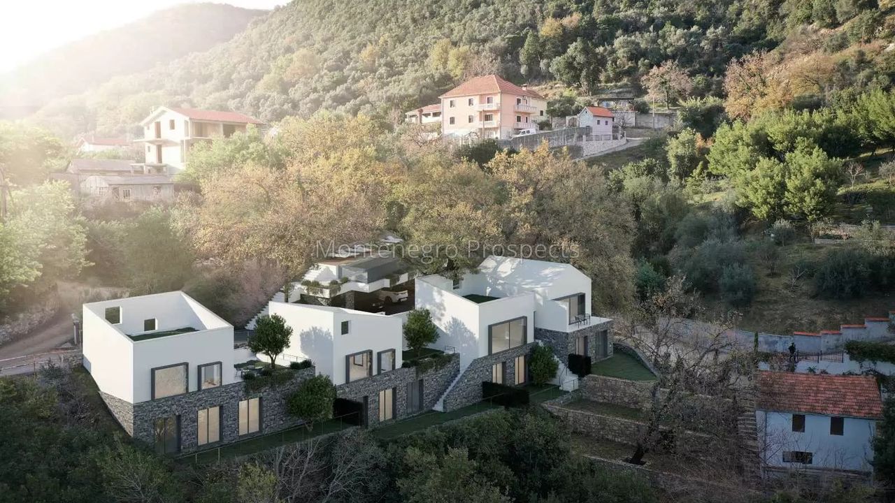 Продаются новые четыре, современно оформленные дома в Боко-Которском заливе, в уютном жилом комплексе в поселке Дженовичи, примерно в 600 метрах от моря и около 1,5 км от комплекса Portonovi и отеля One&Only.