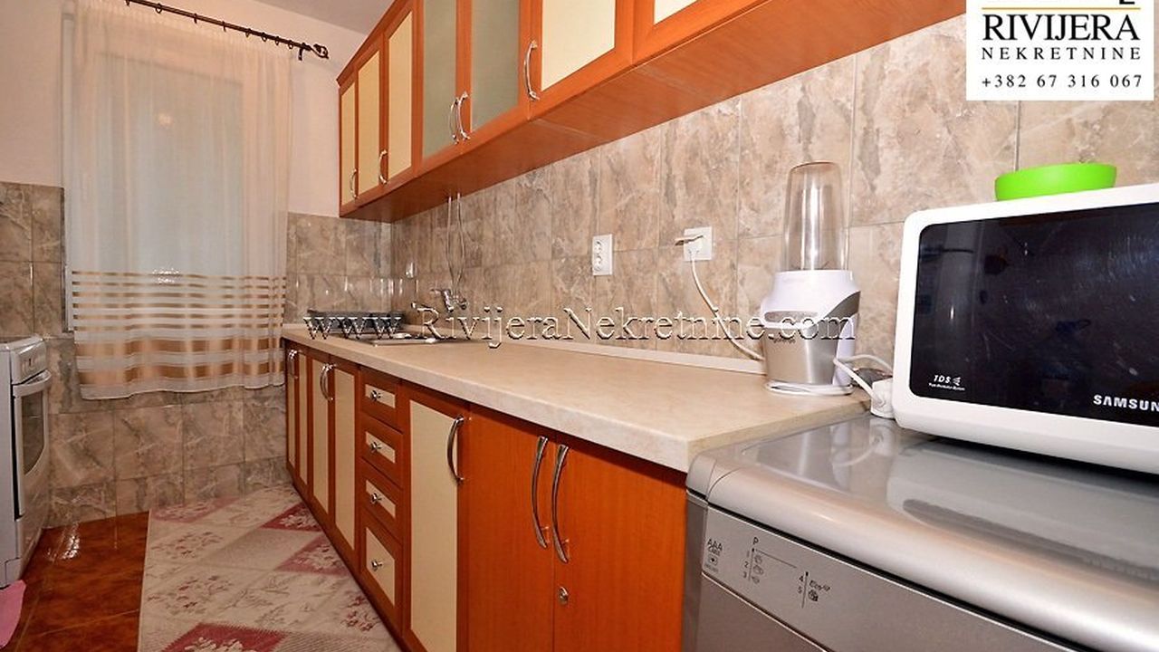 2-комнатная квартира с видом на море в Герцег-Нови. Квартира расположена в районе Crveni krst, жилое здание, общей площадью 56 кв.м (зарегистрировано в титуле на 52 кв.м), ориентировано на юг. Квартира с ремонтом.