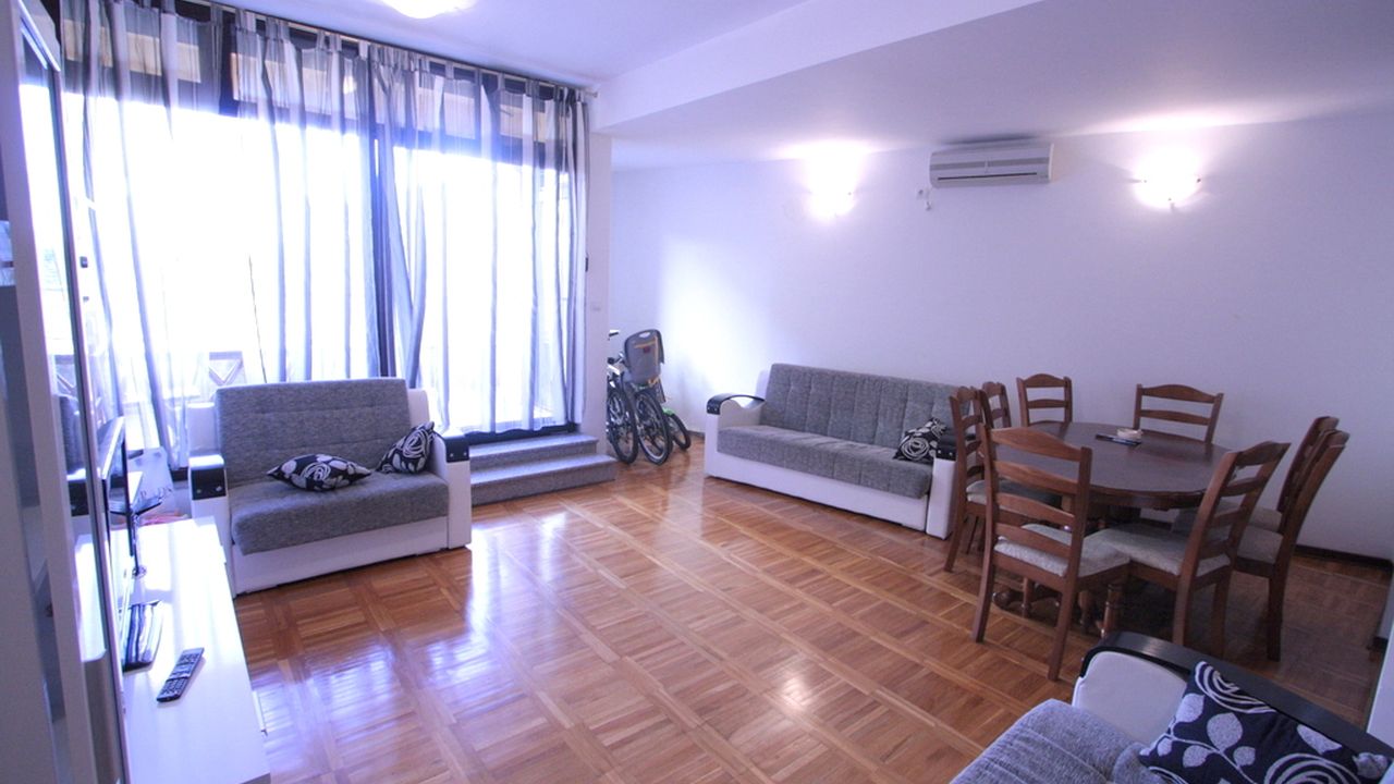 Продается большая квартира, в тихом, зеленом месте микрорайона Игало. Площадь 94м2, 2 спальни, большой санузел с джакузи, кухня-столовая и гостиная с выходом на террасу. Квартира расположена на первом, высоком, этаже, дом немного углублен во двор и закрыт зеленью и небольшой постройкой, что позволяет создать полную приватность. Квартира меблирована и укомплектована бытовой техникой. Отличное предложение для тех, кто любит просторные квартиры и близость моря. Пешеходная набережная (7 км променада с кафе, ресторанами, магазинами и пляжами) перед домом, паркинг перед домом. Все коммуникации и инфраструктура городские. Рядом супермаркет, в шаговой доступности все необходимые магазины. Всего в пяти минутах пешком находится знаменитый санаторий им. Симо Милошевича. Перед домом большая зеленая зона с эвкалиптами, соснами и пальмами, пляж со знаменитыми грязями и долина с минеральными источниками.