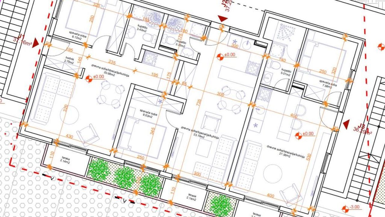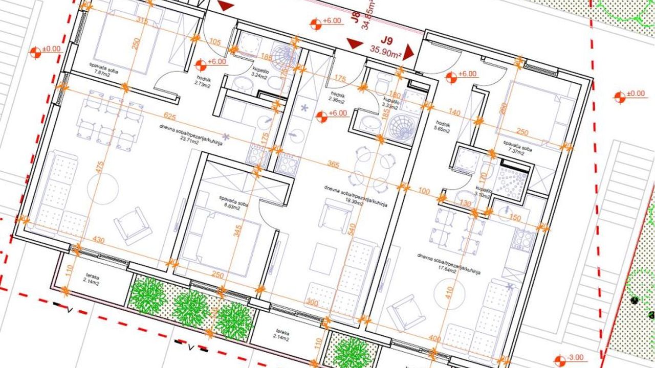 Новое 3-этажное жилое здание строится в ближайшем пригороде Герцег-Нови, в поселке Мелине. В здании, расположенном в 200 метрах от моря, всего 9 квартир.