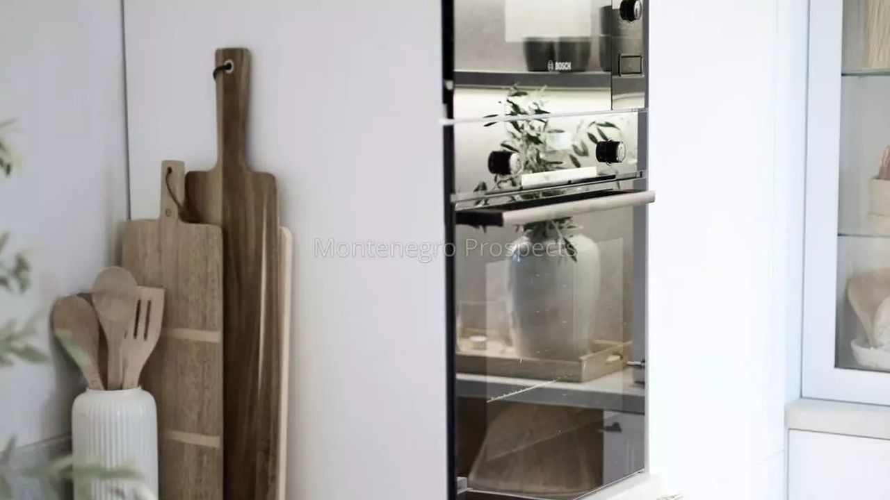 Она полностью меблирована в минималистском стиле, с мебелью высокого качества, которая включена в цену.
