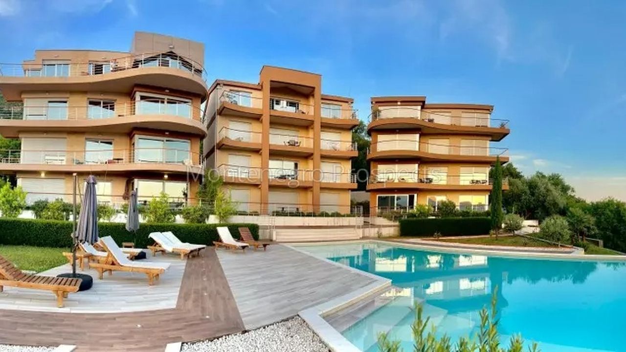 Черногория. Роскошная квартира с видом на море, расположена в жилом комплексе с общим бассейном, Кавач.