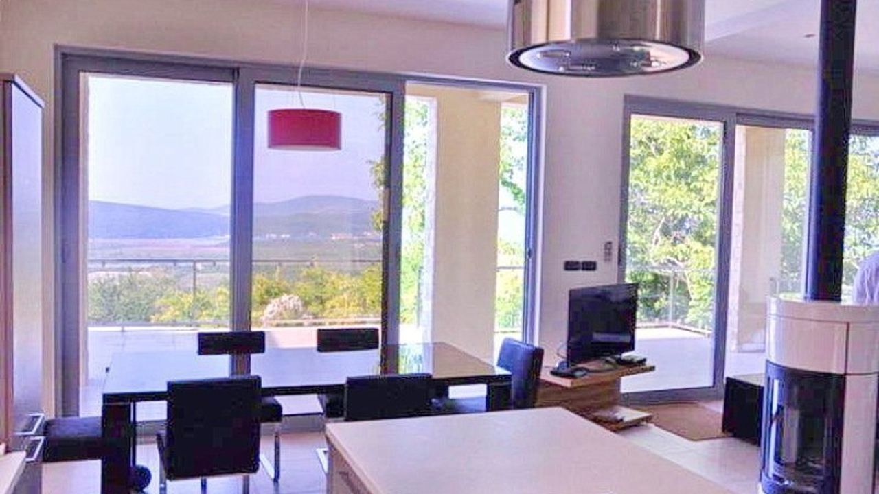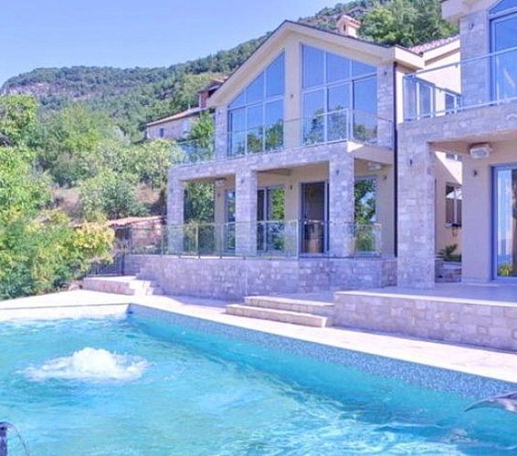Два уютных семейных дома площадью 187 м2 и 220 м2 с тремя спальнями и общим бассейном расположены в тихом и красивом пригороде Тивата, посёлке Кавач. Из окон и с террас каждого дома открывается великолепный панорамный вид на море и горы. Дома соседствуют друг с другом и имеют общий большой бассейн и общую территорию для отдыха. Общая для двух домов площадь участка составляет 879 м2.