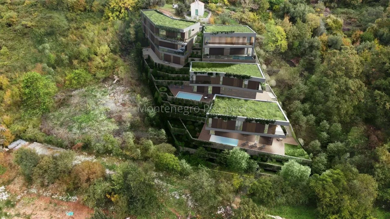 Черногория. Урбанизированный участок с одобренным проектом под строительство 4-ех вилл, Кавач.