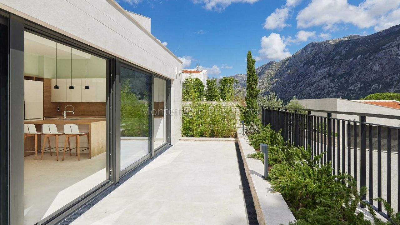Эта уединенная вилла с великолепным видом на море, окруженная горами и обширными средиземноморскими садами, расположена в тихом живописном уголке Которского залива, охраняемого ЮНЕСКО, и представляет собой идеальное убежище. Дизайн виллы гладкий, с чистыми линиями и открытыми просторными интерьерами. Средиземноморские известняковые стены и характерная наклонная терракотовая черепица плывут над стеклянными окнами от пола до потолка, чтобы максимально использовать естественный свет и беспрепятственный, впечатляющий вид на залив в сторону Старого города Котора и гор за ним.