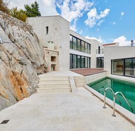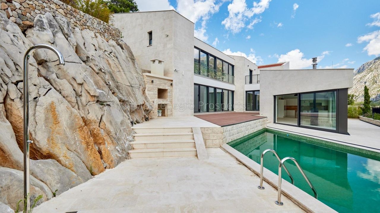 К вилле ведет частная, охраняемая дорога. Она представляет собой просторный современный дом с 5 спальнями и роскошно оформленным интерьером, сауной, пейзажным бассейном и гаражом на две машины. Кухня премиум-класса (Nobilia / Bosch) и сантехника (V&B, Catalano, HansG), керамика и полы (Florim, Porcelanosa и натуральный камень). В жилых помещениях и ванных комнатах полы с подогревом, встроенный кондиционер и вентиляция в потолке.