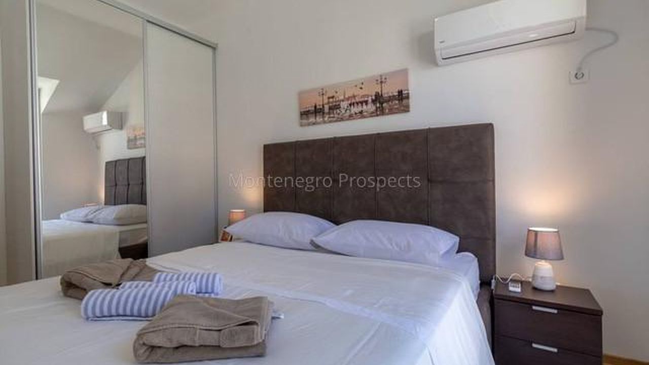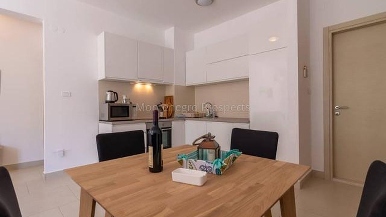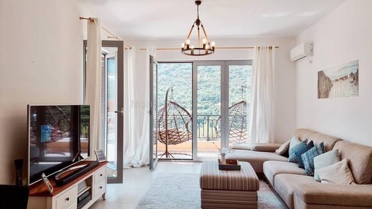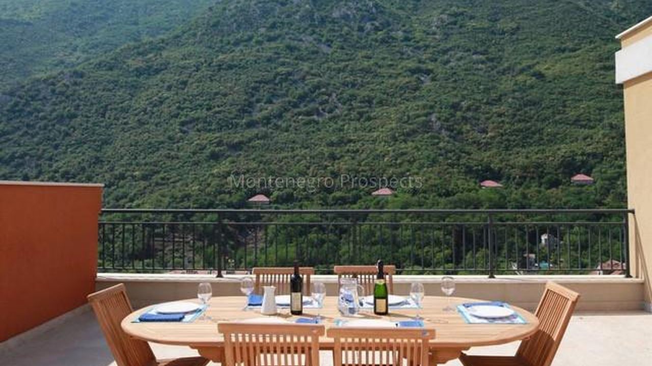 Черногория. Просторная квартира с двумя спальнями, просторной террасой и видом на море, Моринь.