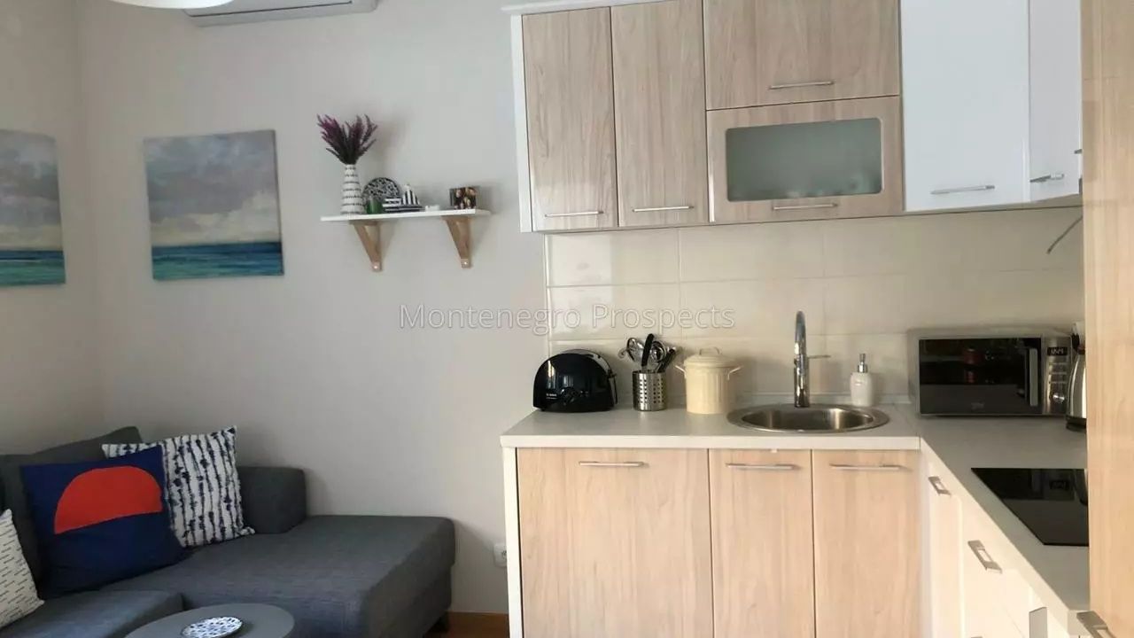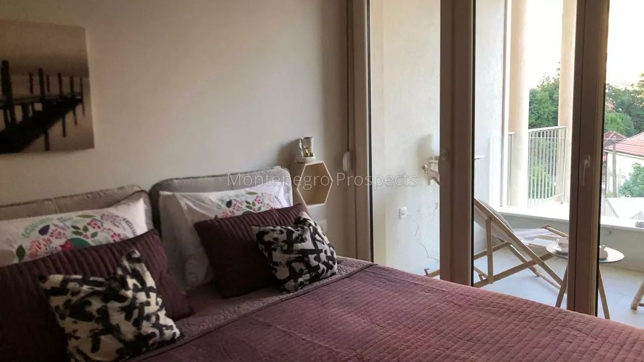 Черногория. Двухкомнатная квартира с видом на море недалеко от пляжа в Ораховце, Бока-Которский залив.