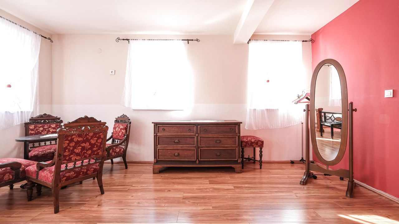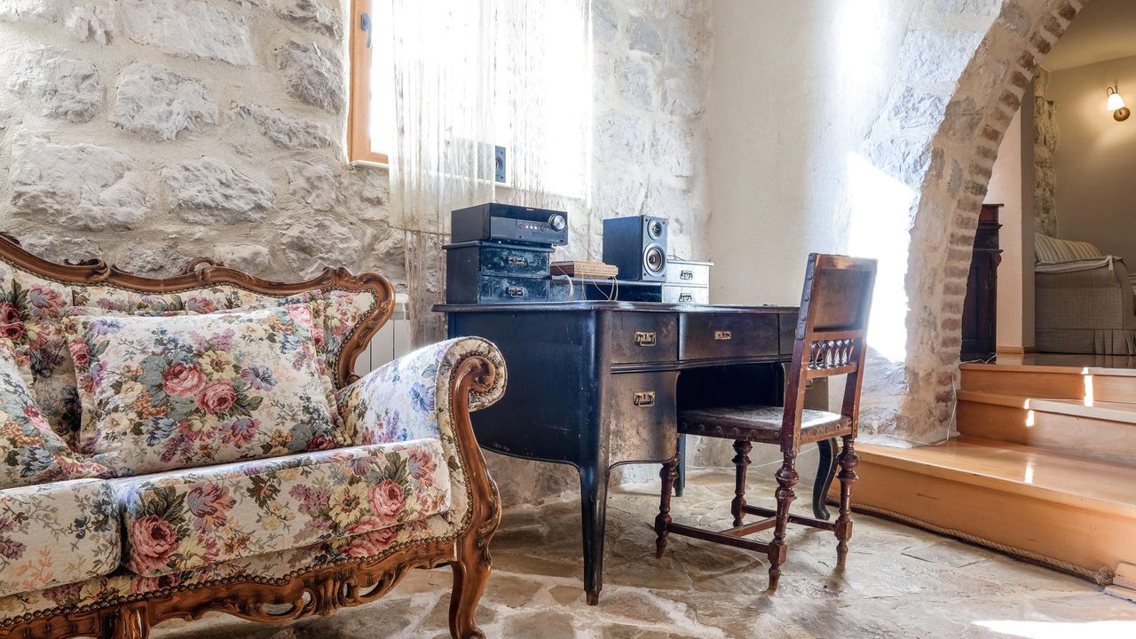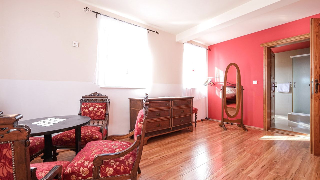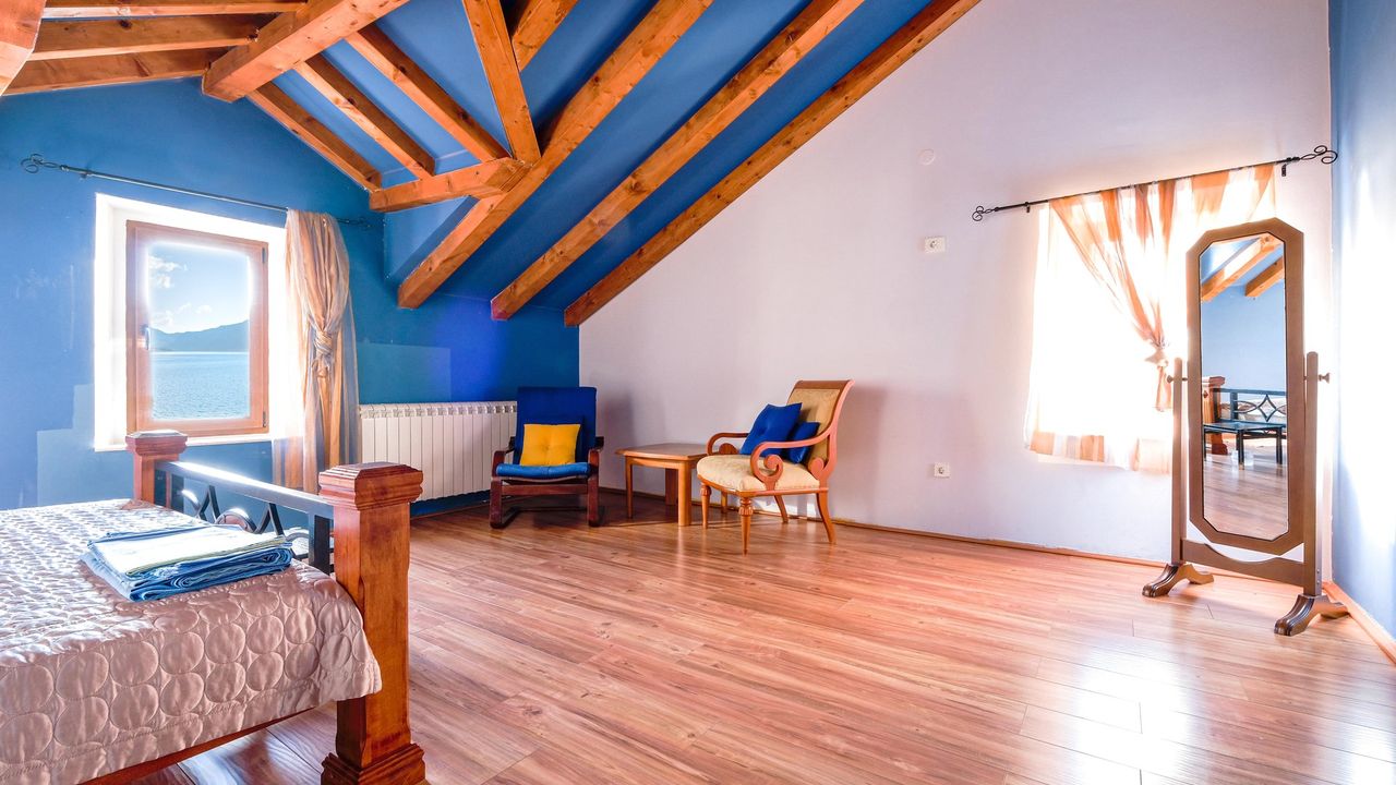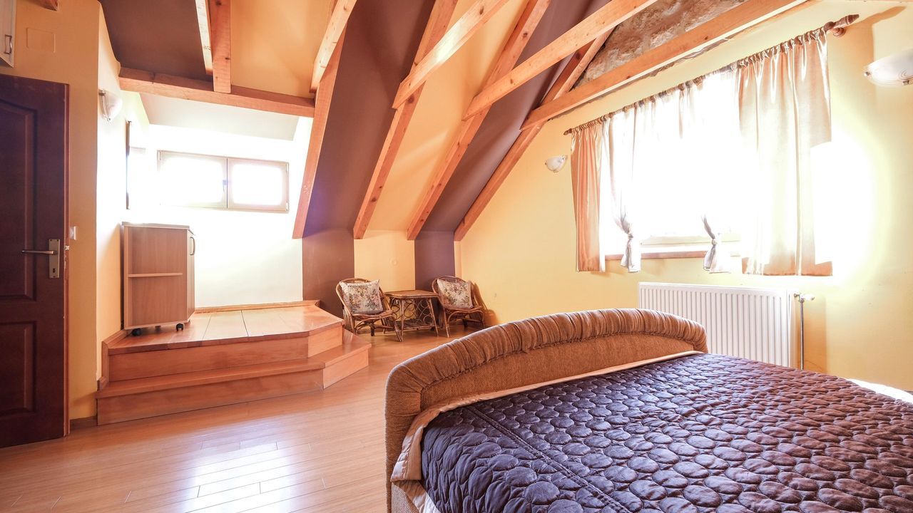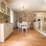 На третьем этаже располагается большая спальня с ванной комнатой и гардеробной, обеспечивающая уединение и комфорт. Флигель на втором этаже включает ванную с душ-кабиной и спальню с двумя антикварными кроватями, а мансарда предлагает дополнительное пространство с ванной и спальней на подиуме.