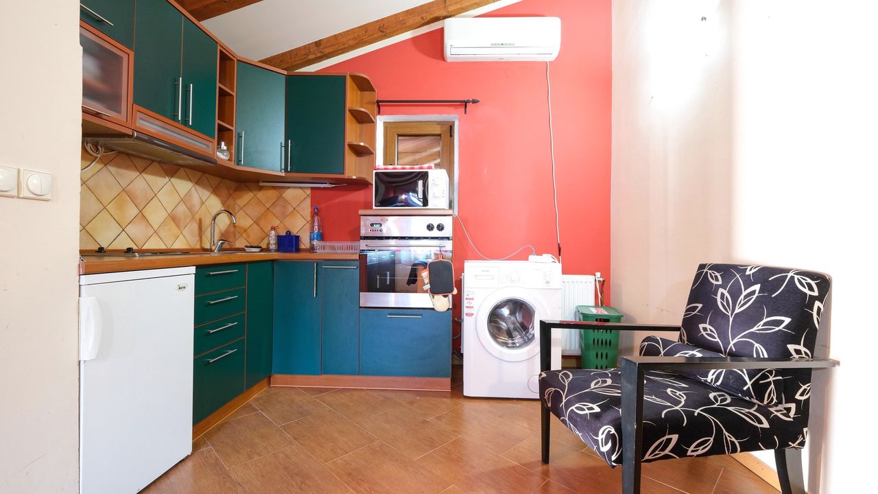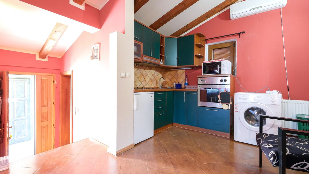 На заднем дворе виллы находится флигель с двумя отдельными апартаментами, каждый из которых включает светлую гостиную с кухней, уютную спальню и ванную комнату. Удобный вход из заднего дворика обеспечивает приватность и независимость. Одна из квартир дополнена сауной, которая разместилась в отдельной пристройке, а рядом с ней расположен открытый бассейн — идеальное место для отдыха в теплые дни. Вторая квартира граничит с мастерской, что делает ее удобной для творческих натур.