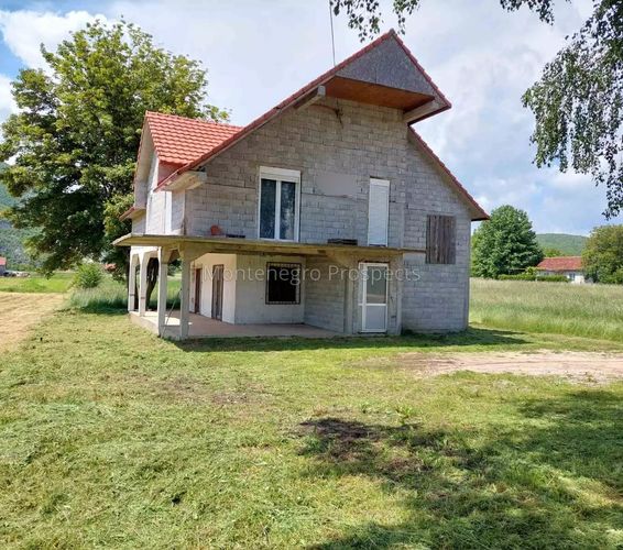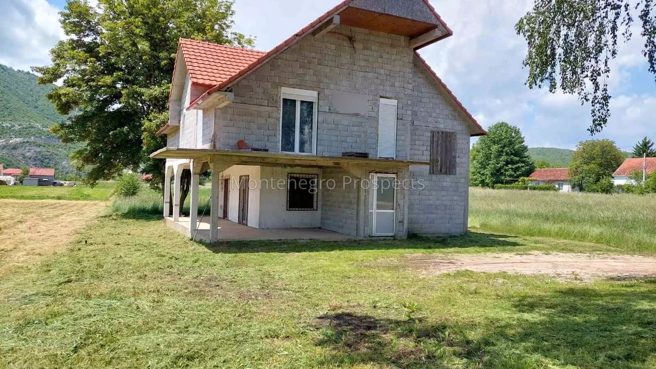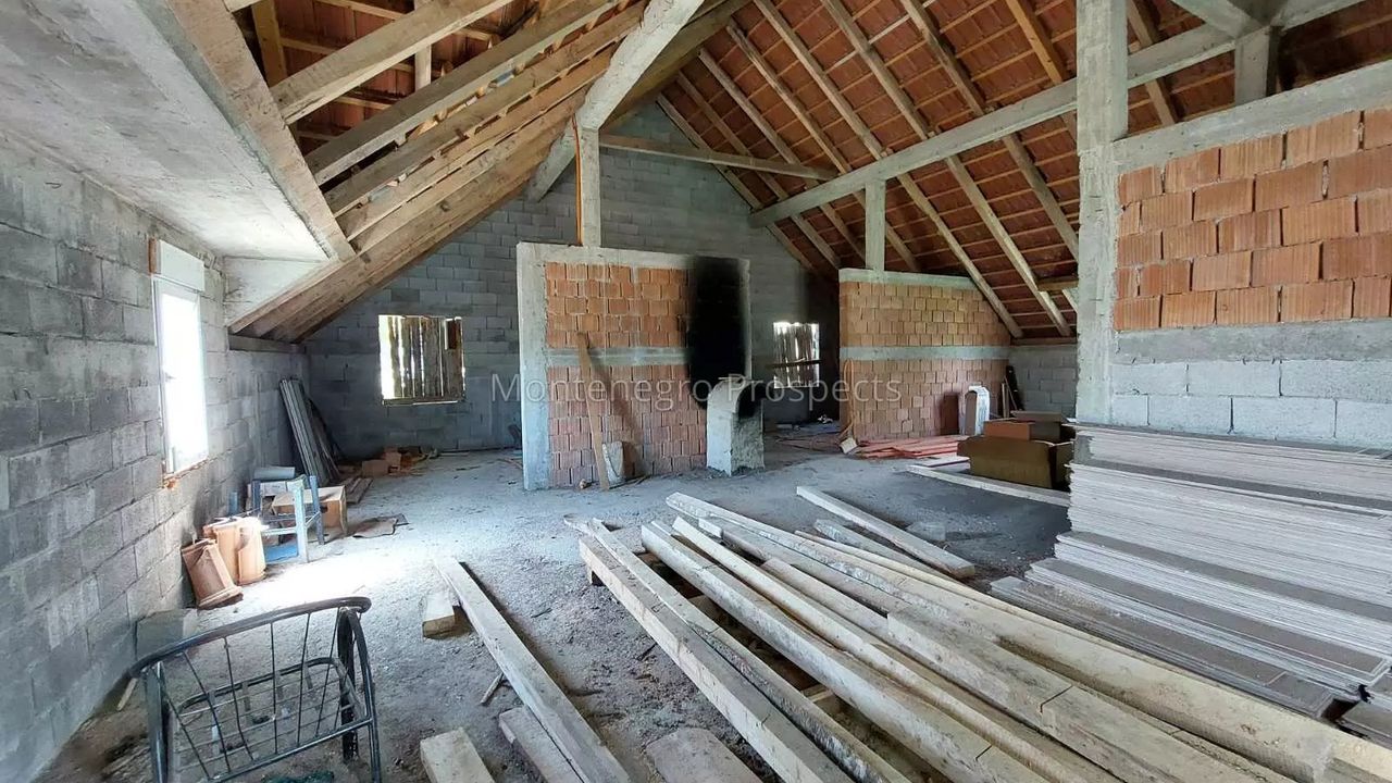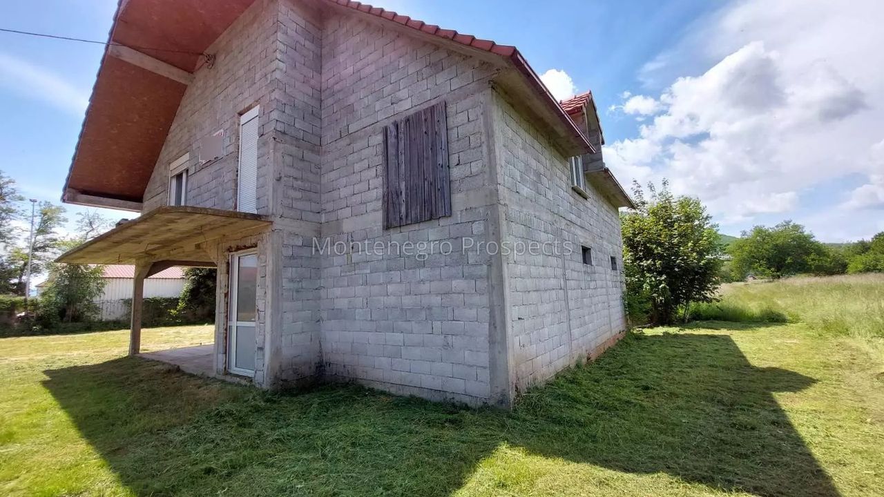 Продается недостроенный дом площадью 220 м2 (зарегистрированная площадь одного этажа 46м2), расположенный на участке 2.032 м2 в районе Горнье Поле — тихой и семейной зоне города Никшич.