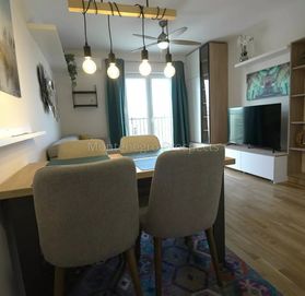 Квартира современно и функционально обставлена новой, ни разу не использованной мебелью.