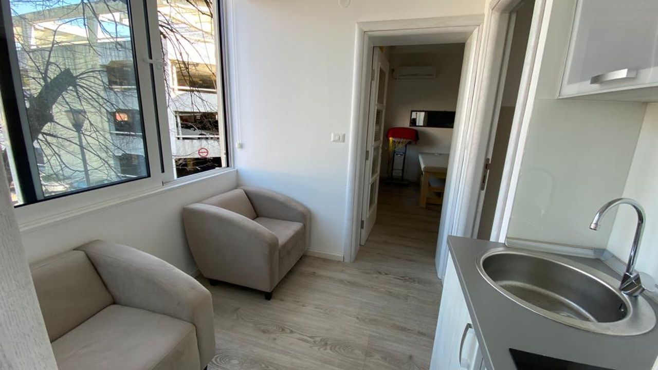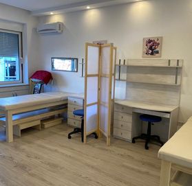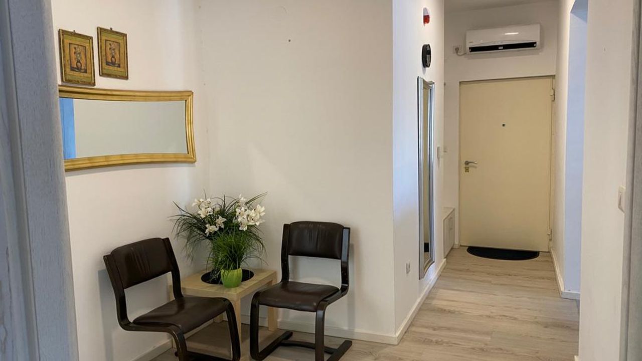 Помещение было разделено на две независимые единицы. Каждая половина имела с/у, балкон, комнату отдыха, кладовку и саму рабочую комнату. Кроме того, при входе сделана рецепция.