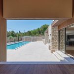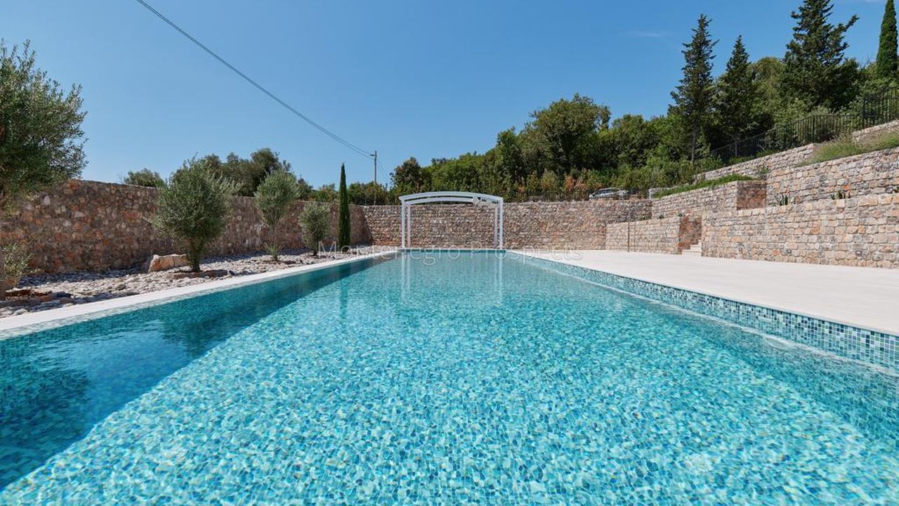 Биоклиматические беседки Alumil, тенистые террасы, известняковое мощение и каменное барбекю создают дополнительные возможности для отдыха и развлечений. Сердцем усадьбы является впечатляющий 24-метровый бассейн с соленой водой (мозаика Appiani), обрамленный оливковыми деревьями и увенчанный выдвижной перголой с настилом Deco.