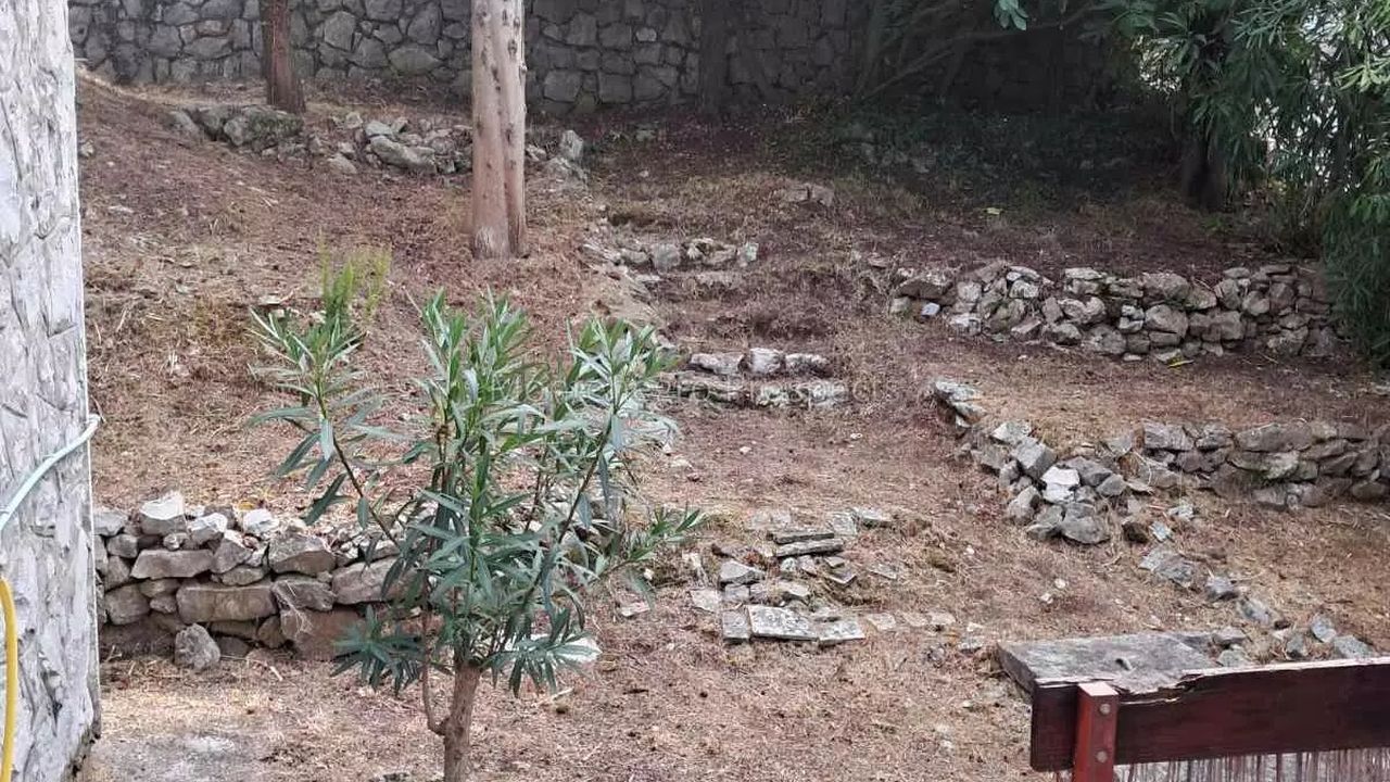 У дома ухоженный двор с взрослыми деревьями кипариса, инжира, олеандра... достаточно просторный, с каменными подпорными стенками и входными воротами.