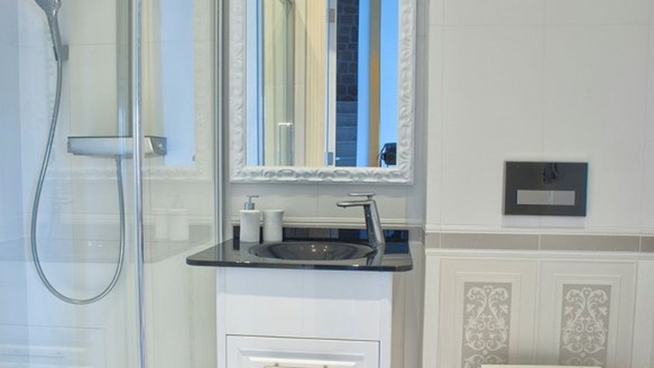 На первом этаже расположены: большая гостиная с камином и столовой зоной с выходом на большую крытую террасу, просторная кухня, вторая гостиная с винным шкафом, уютная спальня с собственной ванной комнатой, а также гостевой туалет.