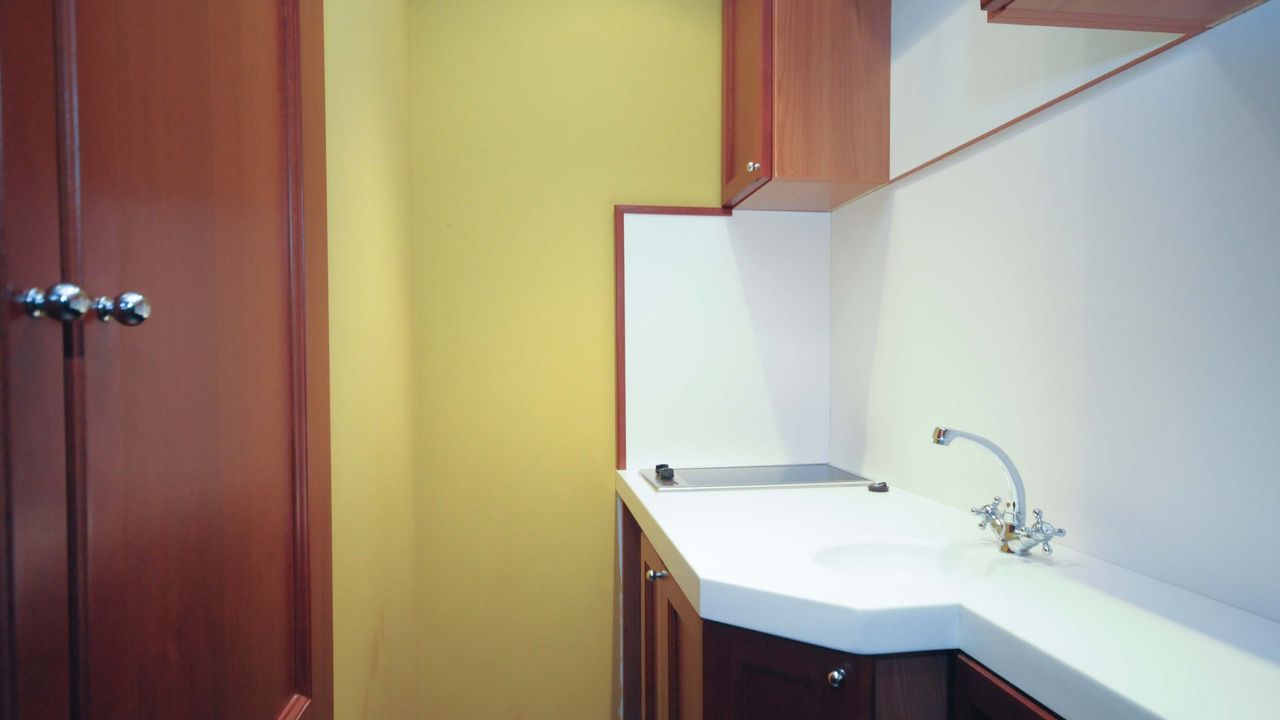Двухместный студио-апартамент - двуспальная кровать, кухня, душ, туалет, терраса с видом на море.