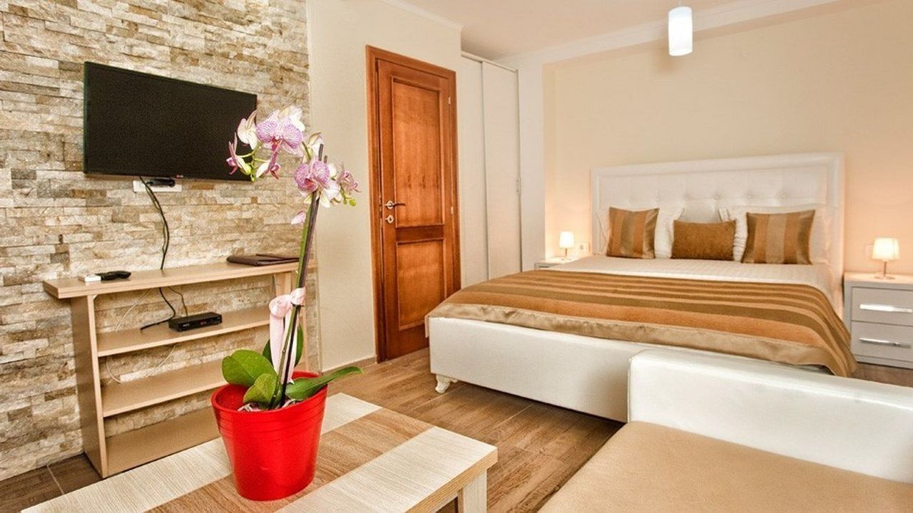 В жилой части ее располагаются комфортабельные номера студии (около 35-40м2) и квартира с двумя спальнями 70м2. Всего 7 единиц.