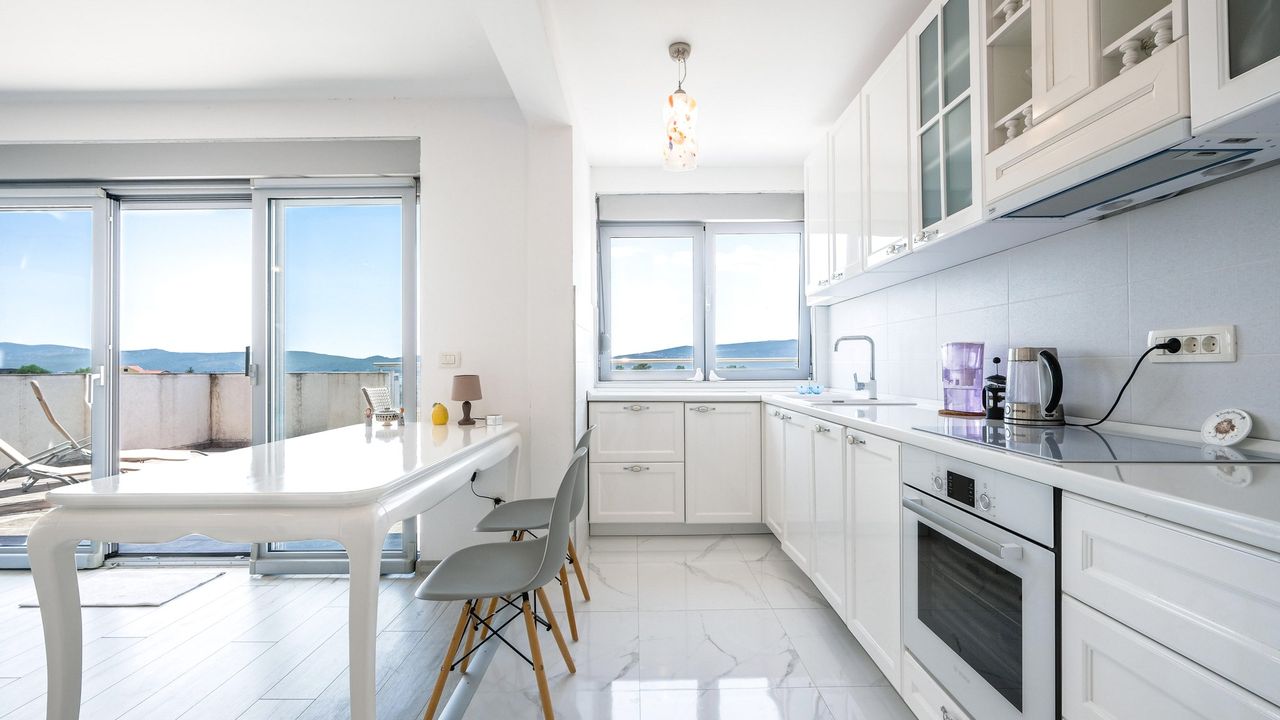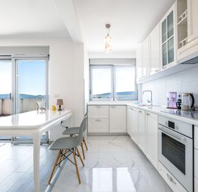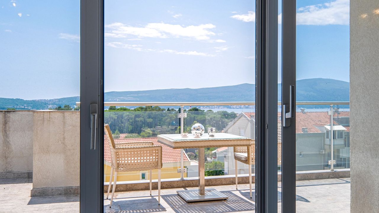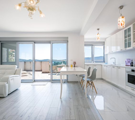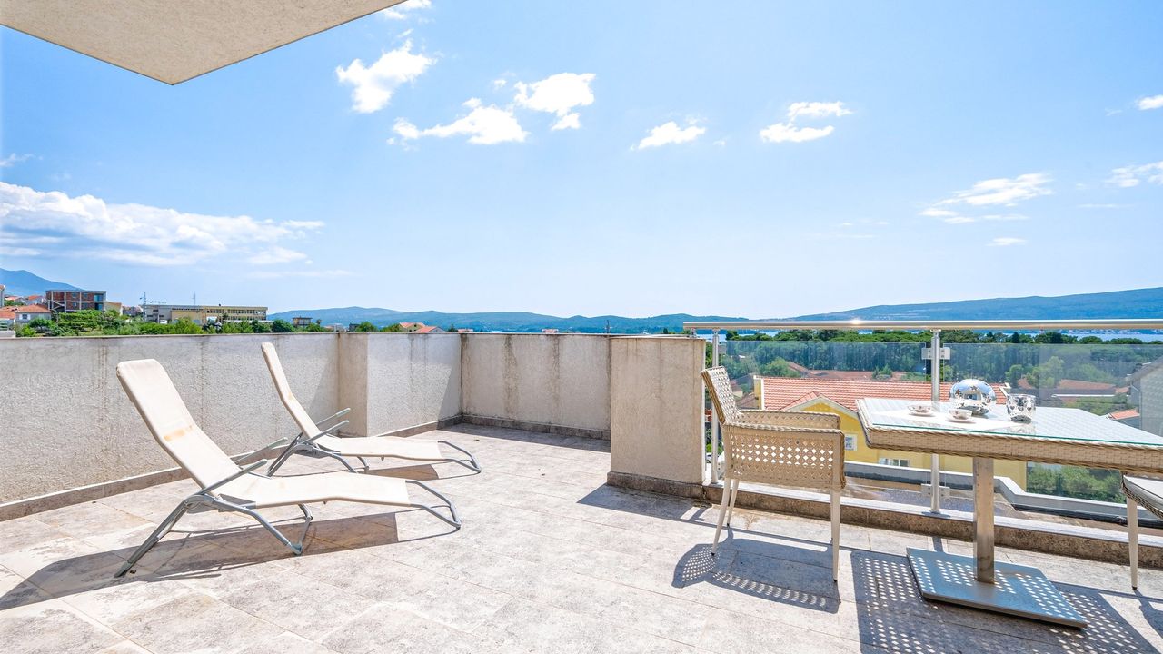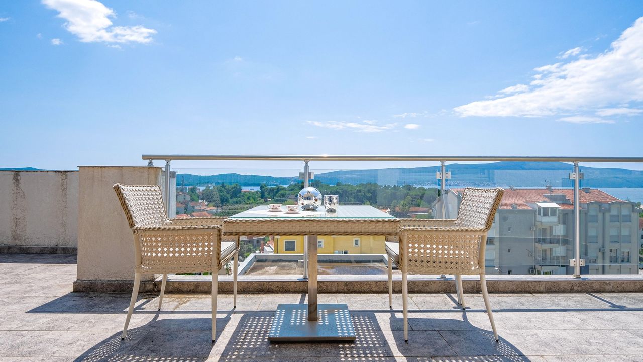 Просторный пентхаус имеет большую террасу площадью 33 м2, откуда открывается захватывающий панорамный вид на море. Насладитесь утренним кофе или вечерним коктейлем, любуясь великолепным видом на море и прекрасными закатами.