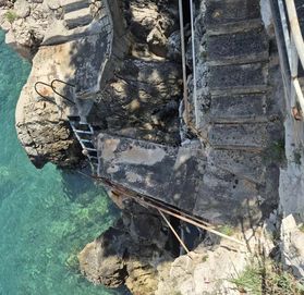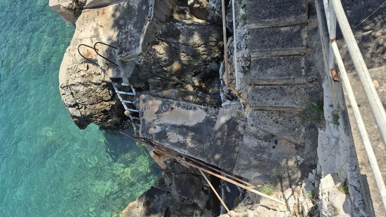 Участок площадью 484 м2 имеет каскадную конфигурацию, откуда открывается прекрасный вид на море. Перед участком, на камнях, расположено небольшое место для купания в море с прямым доступом с участка, а в непосредственной близости, всего в 500 метрах, прекрасные пляжи.