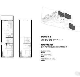 Проект состоит из пяти жилых блоков и 43 квартир, которые имеют превосходный ландшафтный дизайн и панорамные виды на море и горы.