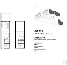 Проект состоит из пяти жилых блоков и 43 квартир, которые имеют превосходный ландшафтный дизайн и панорамные виды на море и горы.