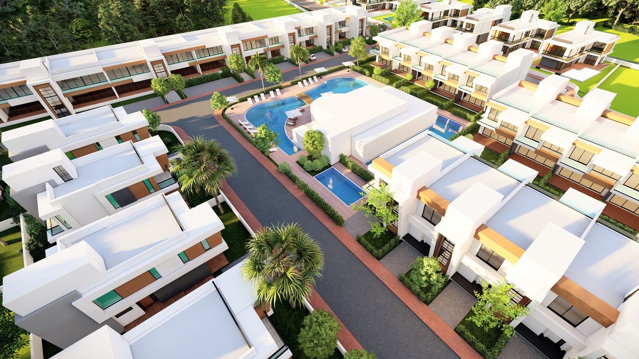 В комплексе есть открытый и крытый бассейн, сауна, тренажерный зал, зона для барбекю, кафе, магазин, детская площадка и т.д. Идеальное место для людей, ценящих комфорт и спокойствие.