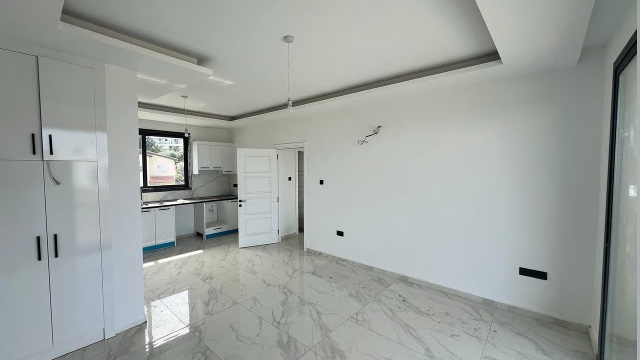 Квартира находится в элитном районе Алсанджак. Дом находится в самой зелёной части региона, на возвышенности всего в 2,5 км от побережья. Такое расположение обеспечивает комфортный климат и чистый горный воздух. Здание построено в 2025 году, состоит из двух этажей и включает всего четыре квартиры, что создаёт приватную и спокойную атмосферу. Район окружён деревьями и зеленью, в пешей доступности находятся магазины, школы, детские сады, а также вся необходимая инфраструктура.
