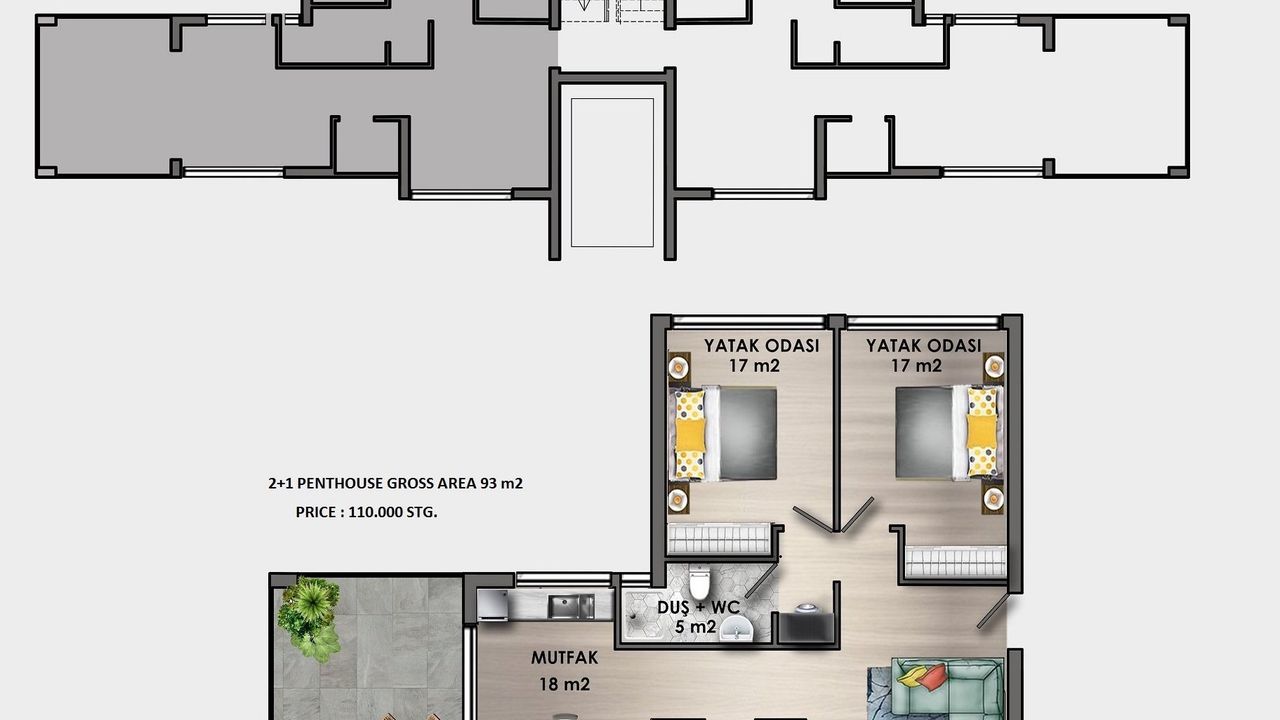 Пентхаус в этом комплексе будут превосходным местом отдыха и отличной инвестицией. Все квартиры в комплексе будут идти со встроенной кухней, так же на этапе строительства можно будет выбрать цвет отделки . В спальне установлены просторные встроенные шкафы. Сантехника в ванной комнате тоже уже включены в стоимость.