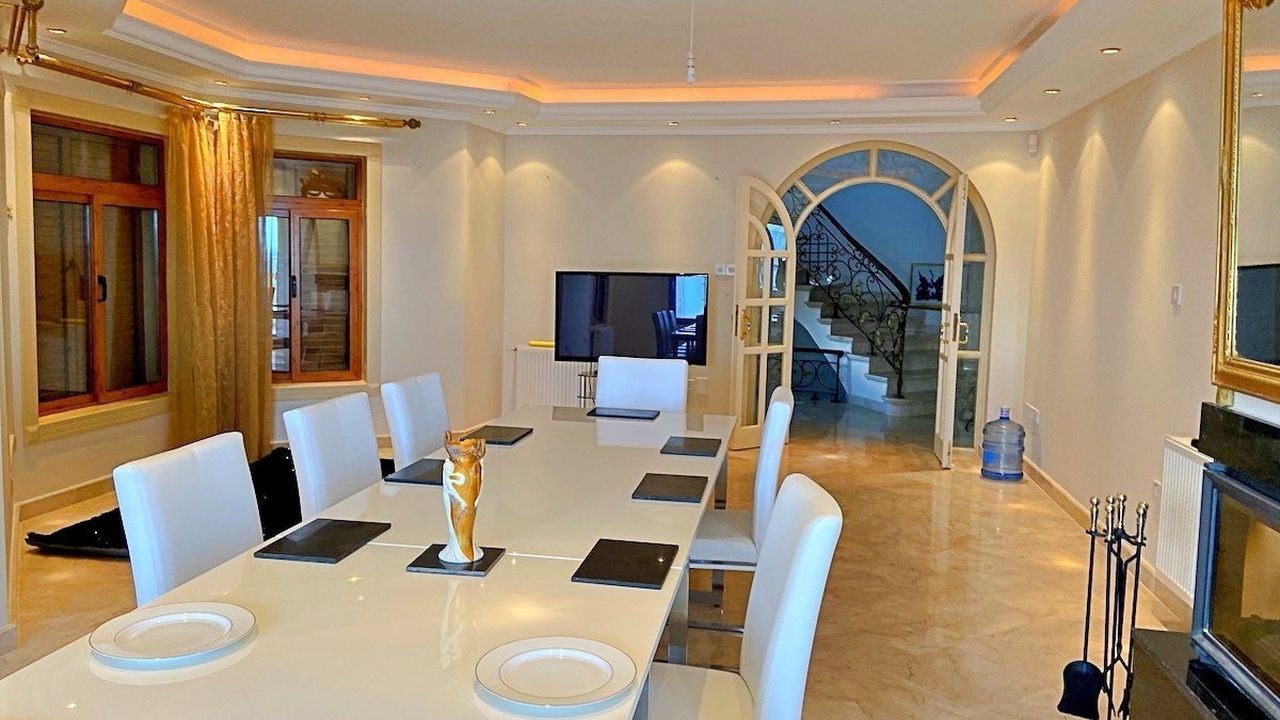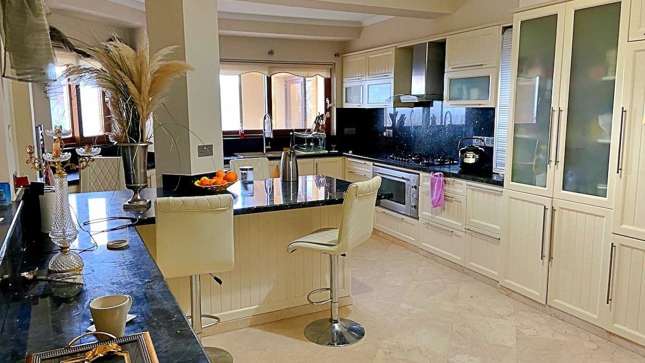 Основными чертами дома являются использование натурального камня, мрамора, гранита. Потрясающие арки из натурального камня, форма бассейна и конечно, огромная территория вокруг дома – впечатляют. Дом продается с мебелью.
