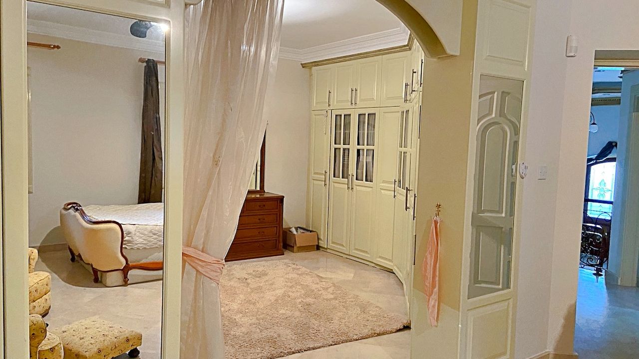 Женская спальная имеет гардеробную со встроенными шкафами, ванную.