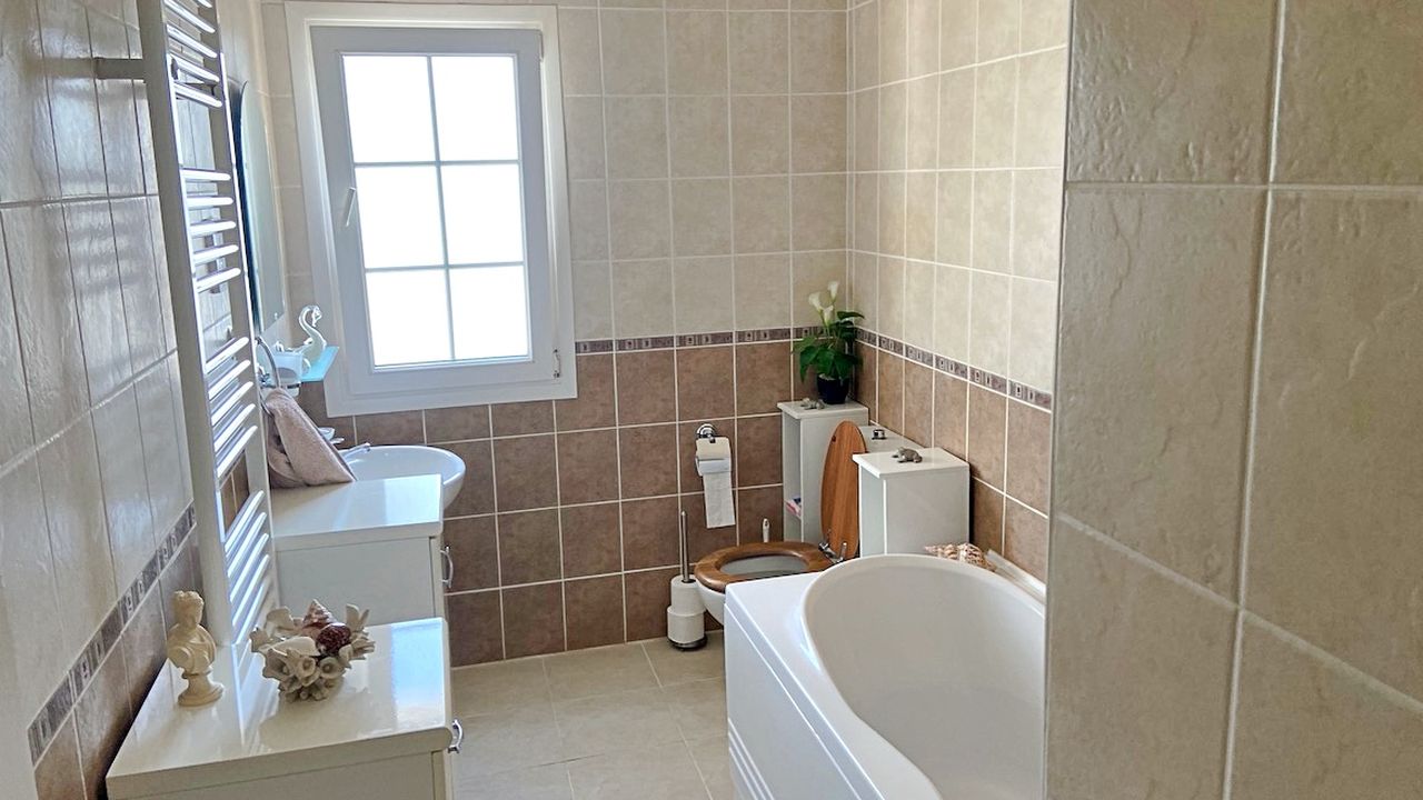 Недвижимость предлагает 250 м2, 5 спальных комнат, з из которых расположены на первом этаже и две на втором с отдельным входом.