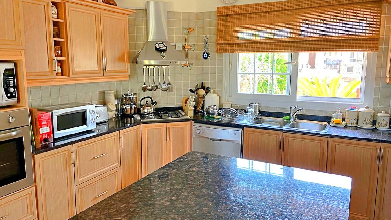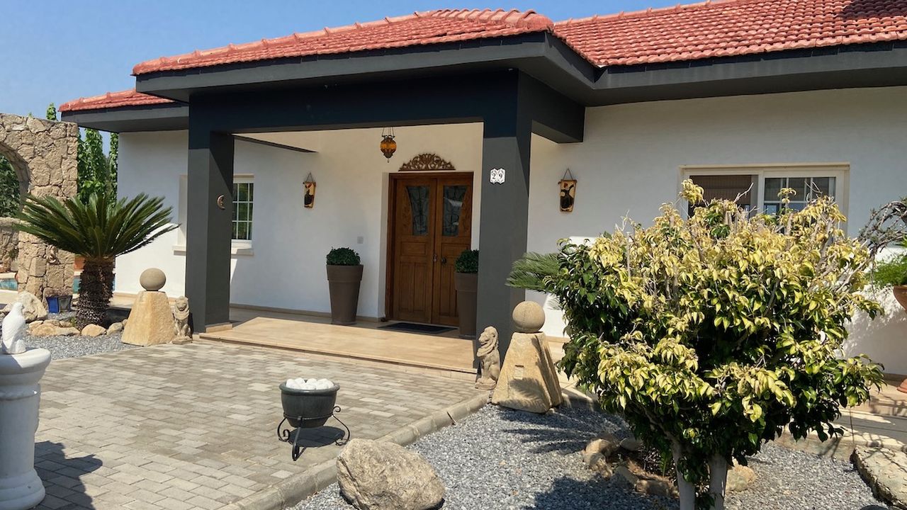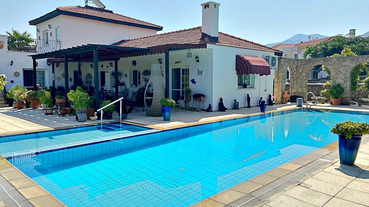 Вилла расположена на большом участке (1 донум), где также есть большой бассейн, ухоженный сад, парковка на несколько автомобилей.