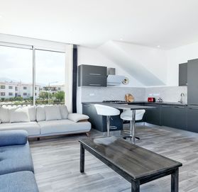 В самом сердце Северного Кипра, находится эта очаровательная квартира в невысоком здании, которая выделяется своей двойной ориентацией, прекрасными видами и функциональной планировкой, максимально использующей каждый уголок ее 75 м2 застроенной площади.