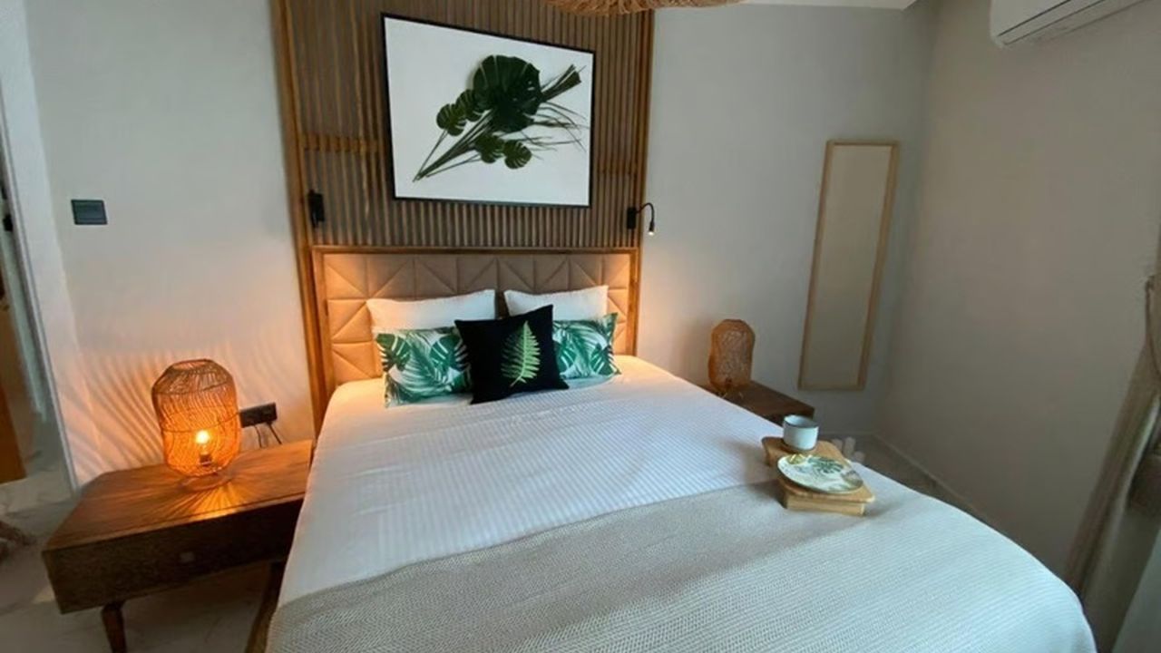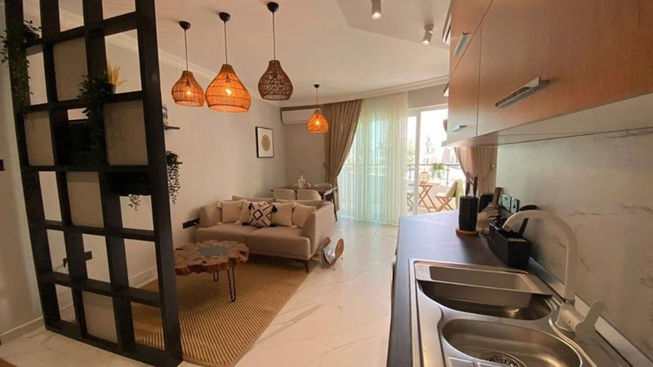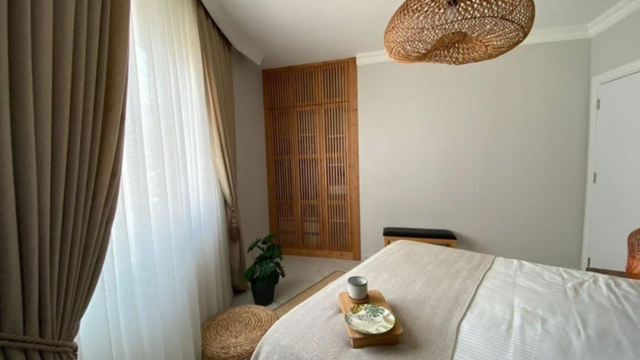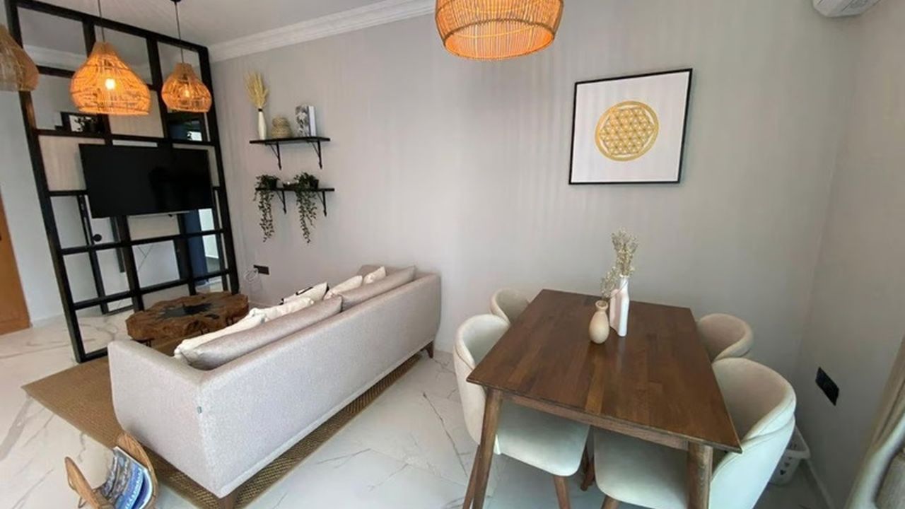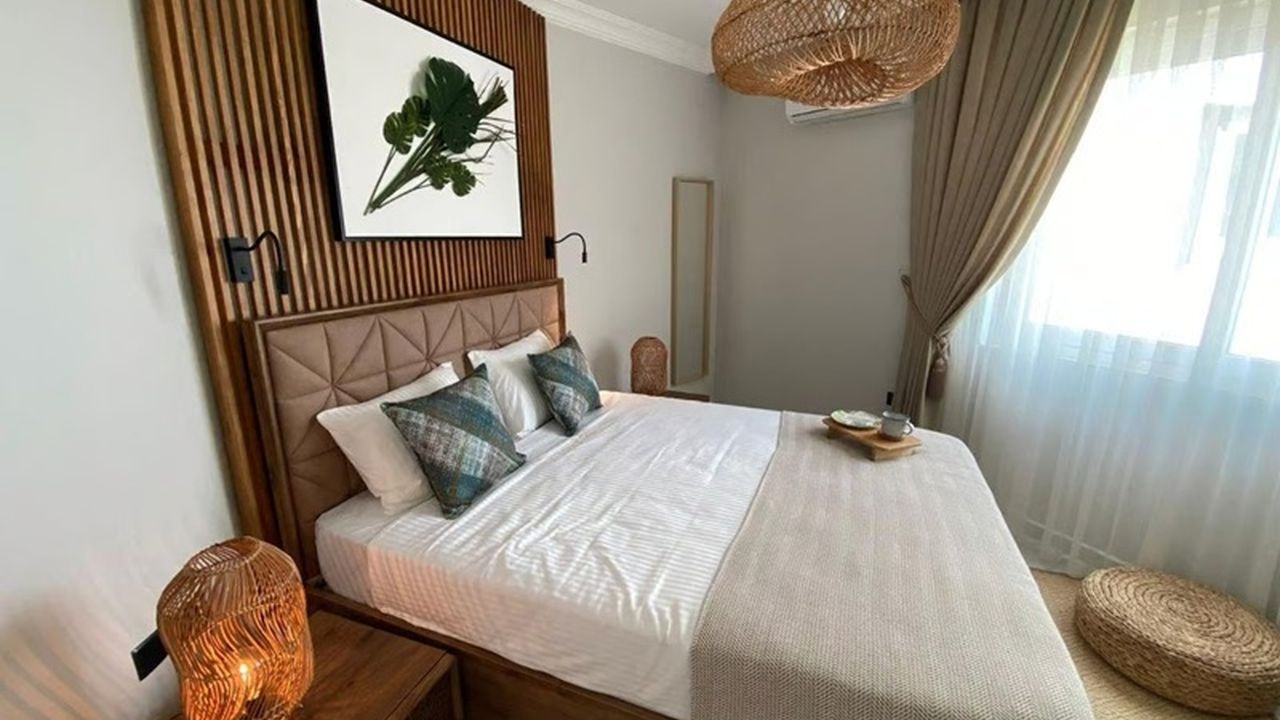 Квартира с одной спальней (1+1) площадью 60 м2 с просторной террасой и небольшим садом, полностью меблирована и оборудована современной техникой.