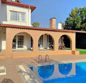 Вилла площадью 150 м2, расположена на тихой улице, имеет большую крытую террасу с выходом к бассейну.