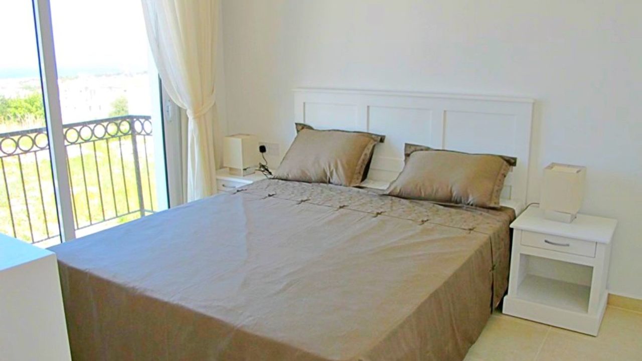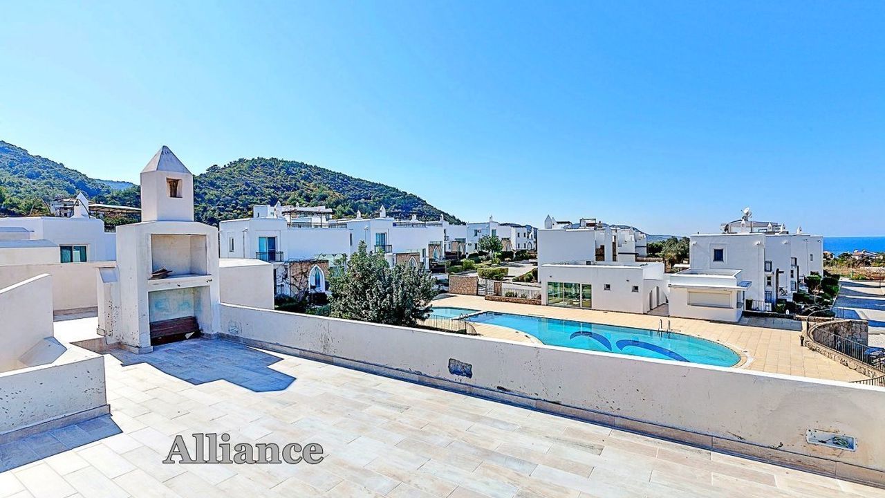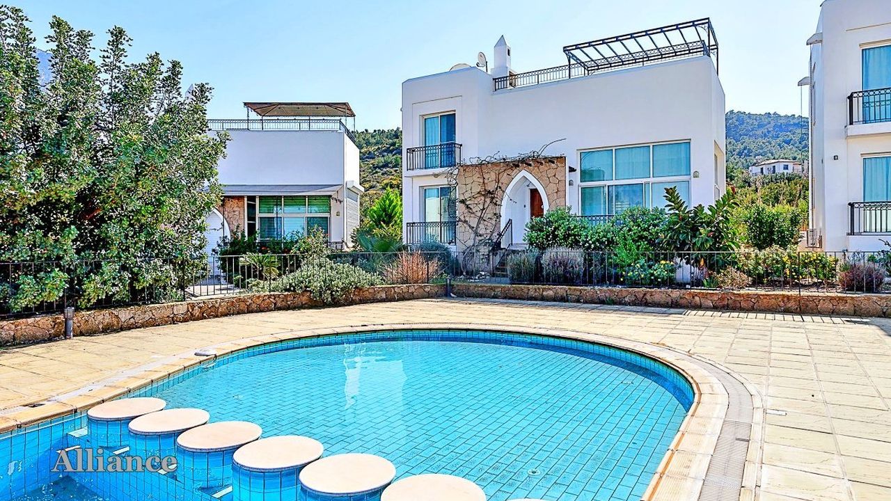 Это замечательное предложение недвижимости - 3-х спальная вилла находится в комплексе, в населенном пункте Каршияка, и имеет потрясающий видна Средиземное море и Киренейские горы. Вилла идеальна как дом для отдыха, так и постоянного проживания для небольшой семьи. Просторная терраса с барбекю расположена на крыше мини - виллы. Гостиная и кухня открытого плана со встроенными кухонными шкафами и окнами арочного типа, также имеет выход на террасу. Две спальные комнаты расположены на втором этаже. В комплексе - коммунальный бассейн, зелёные общественные территории, компания по уходу и аренде недвижимостью
